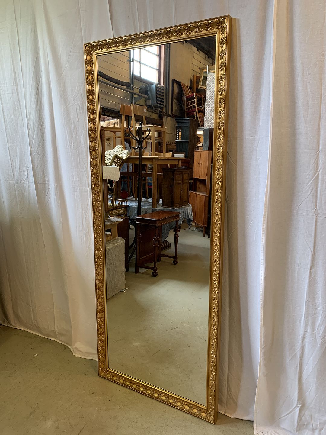 Stort spejl med guldmalet ramme, fra 2000erne.Det har små brugsspor.