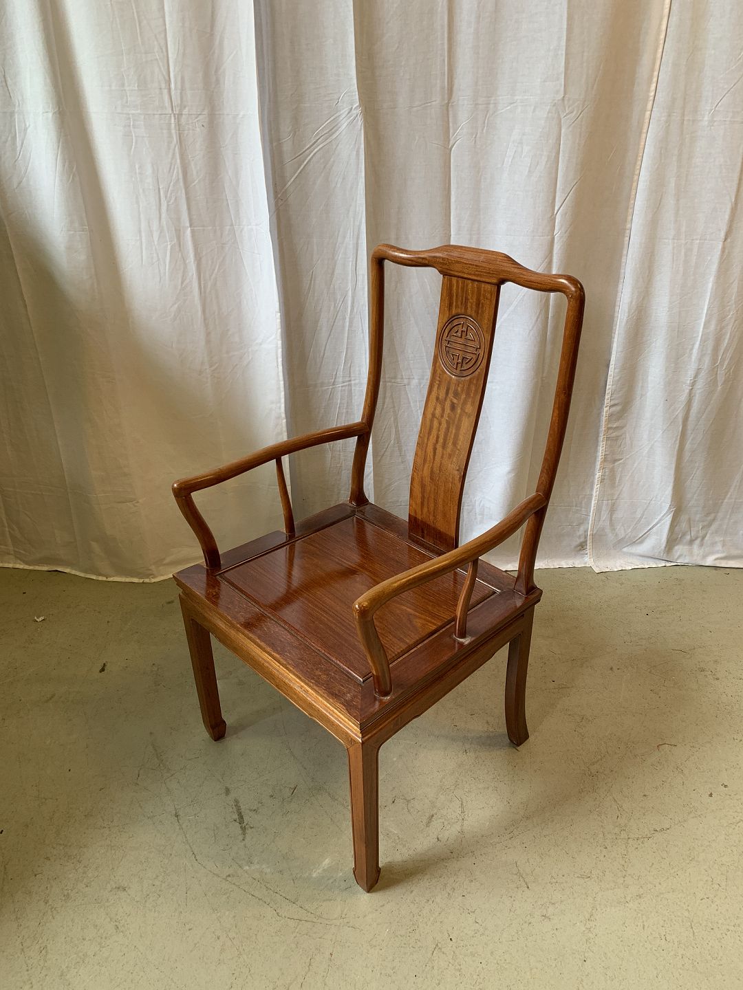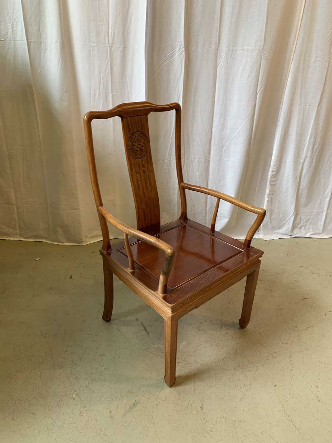 Kinesisk stol i massivt træ, fra 1990erne.Den har brugsspor.