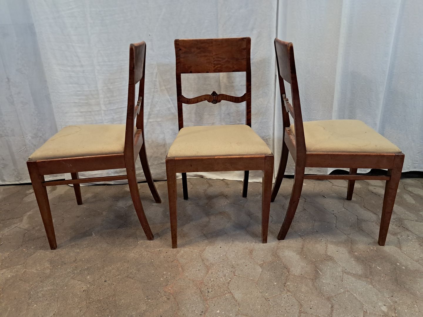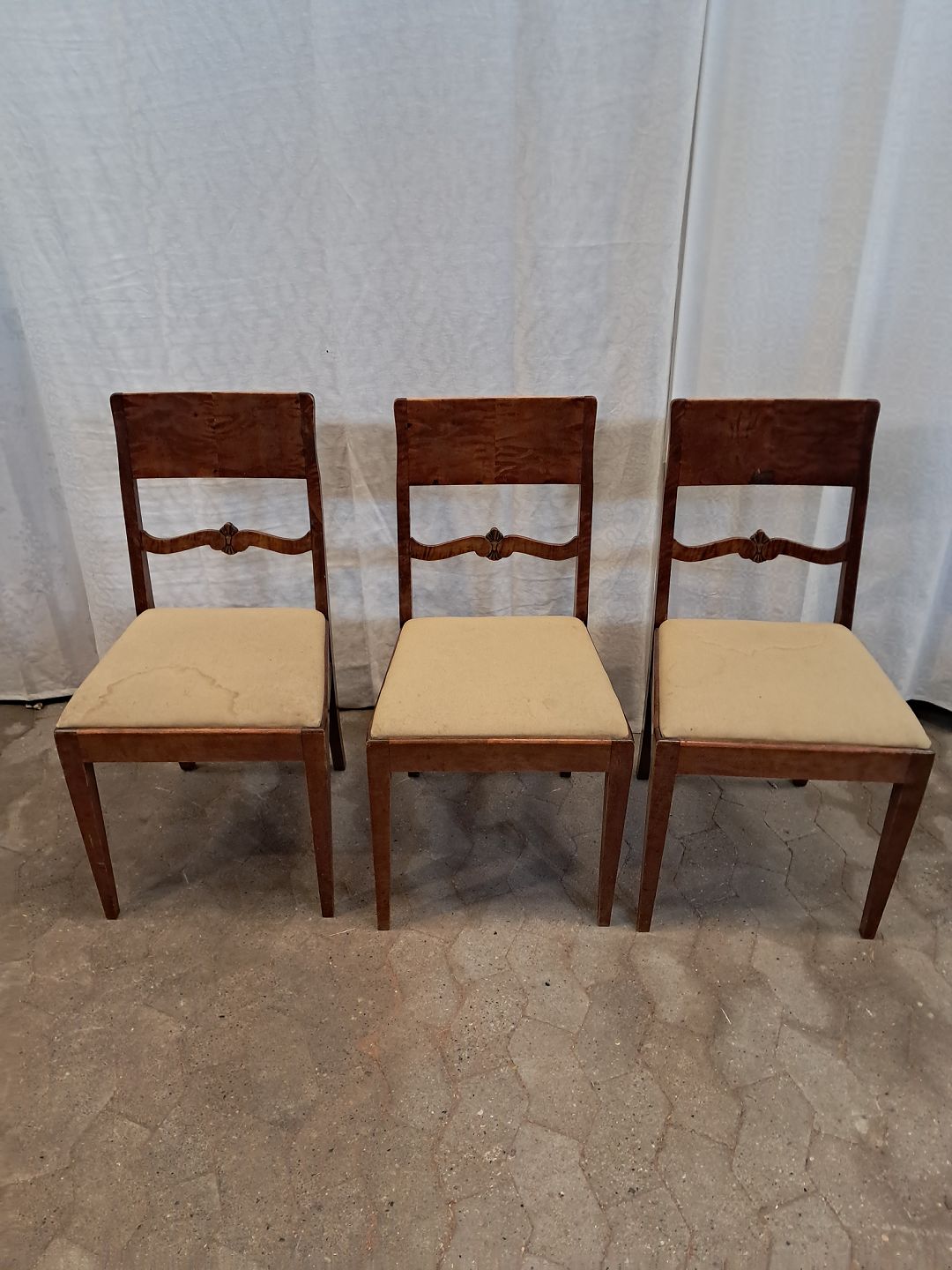 3 Stole i massivt birketræ, fra 1920erne.De har brugsspor.