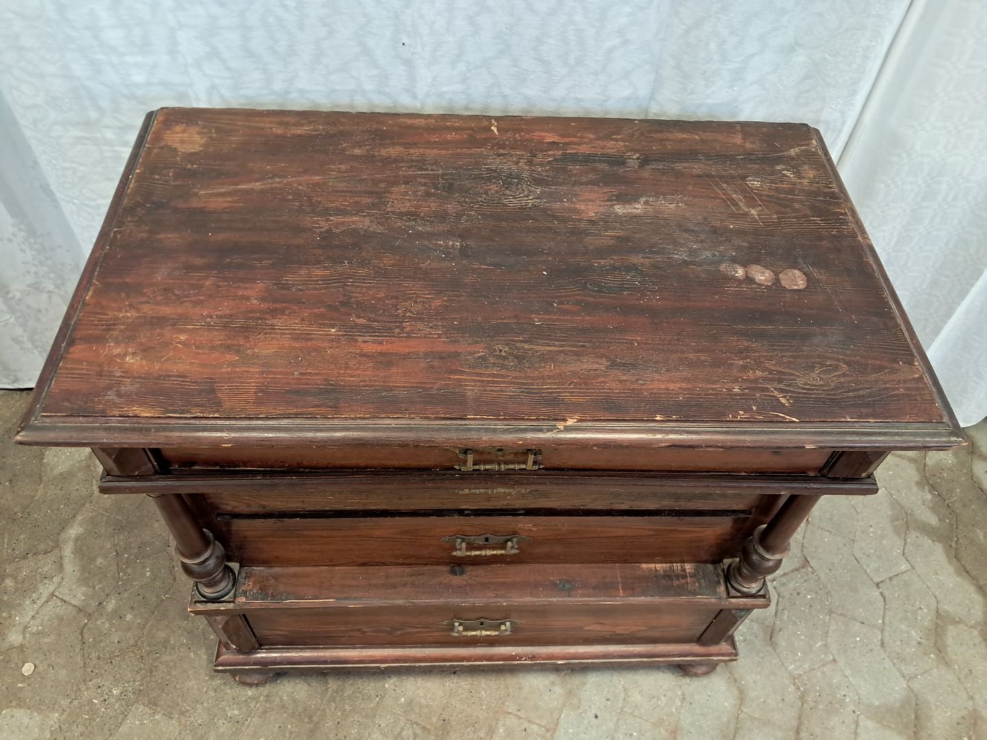 Kommode i massivt fyrretræ, fra 1900erne.Den har brugsspor.