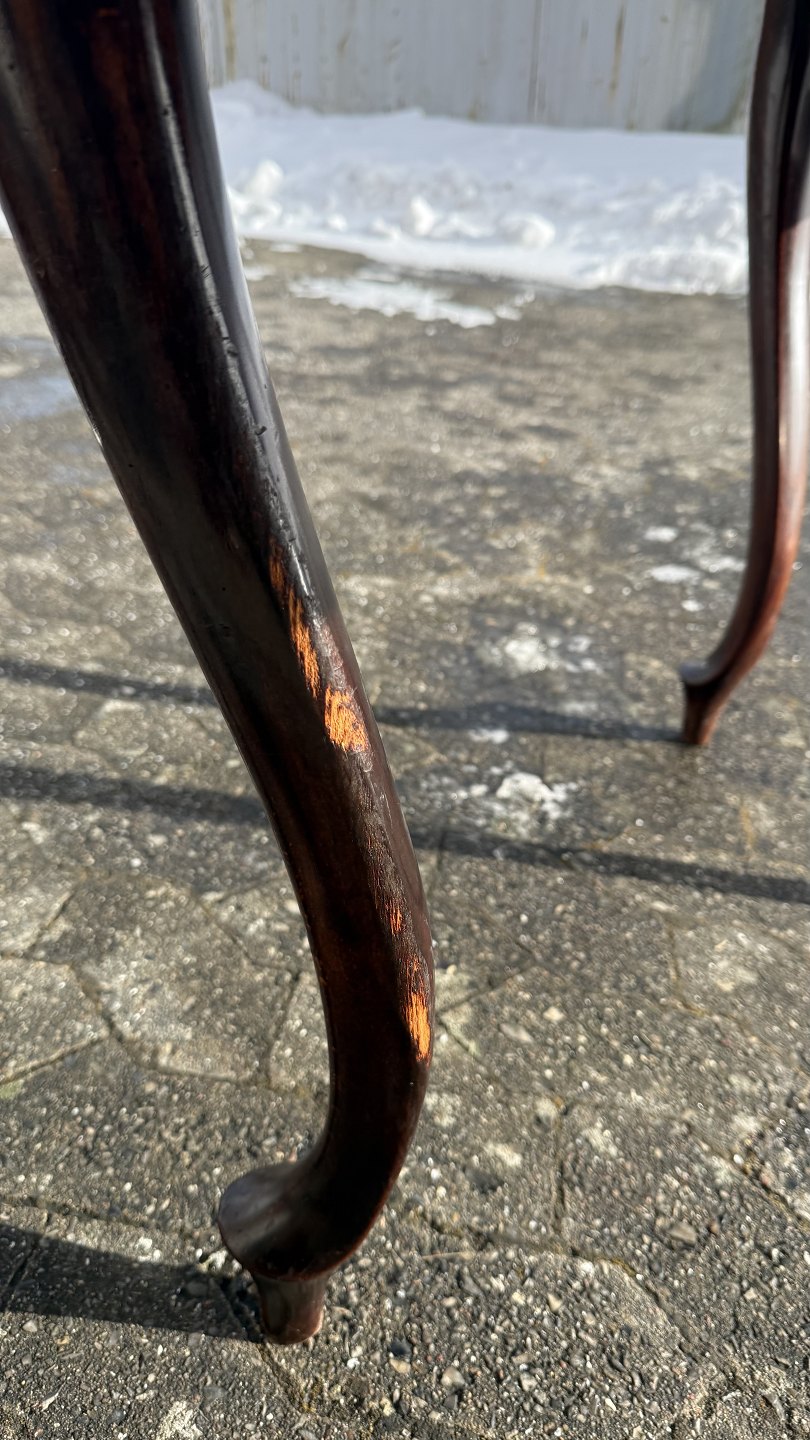 Ovalt salonbord i massivt mahogni med 2 tillægsplader, fra 1920erne.Det har brugsspor.