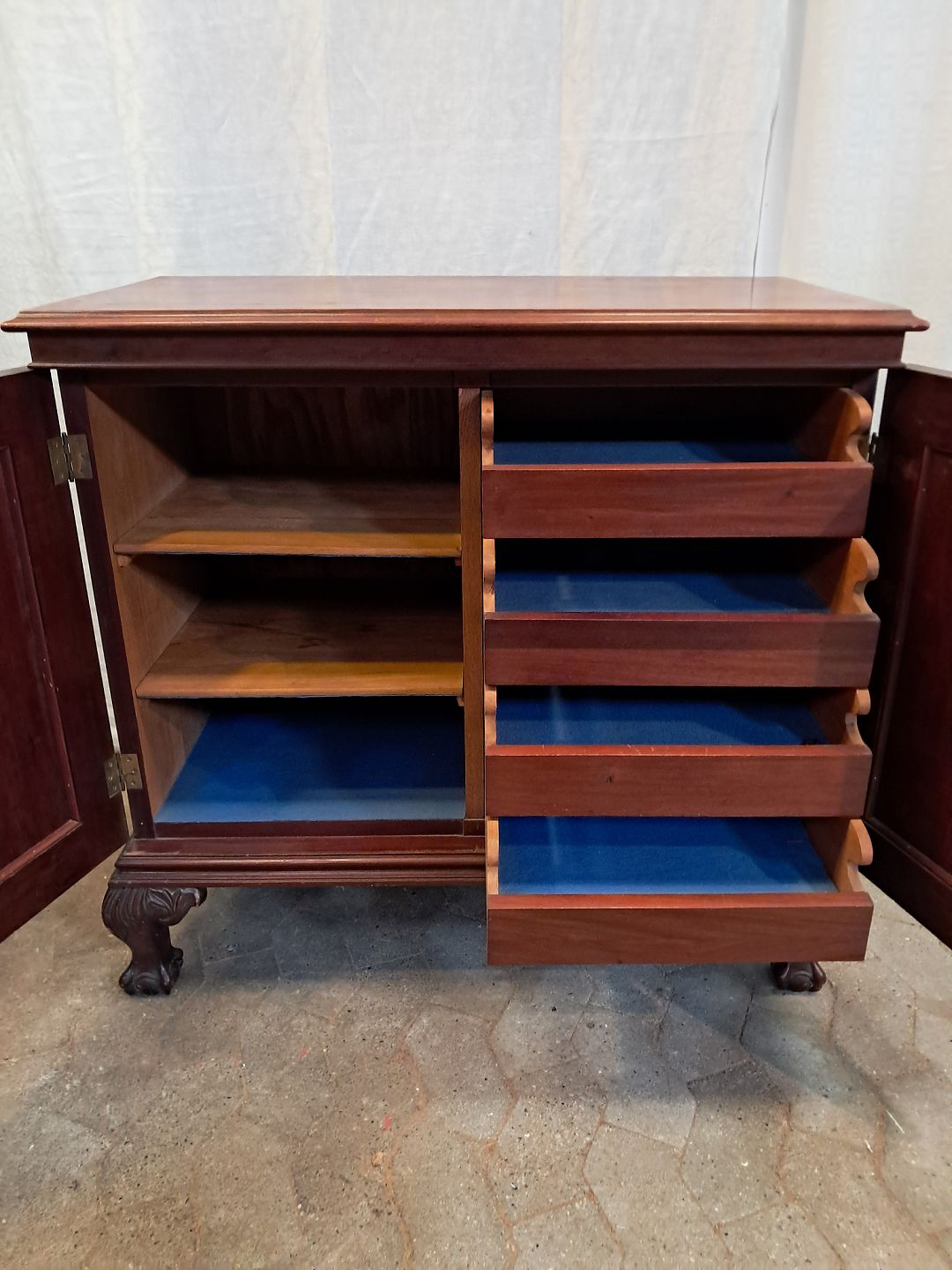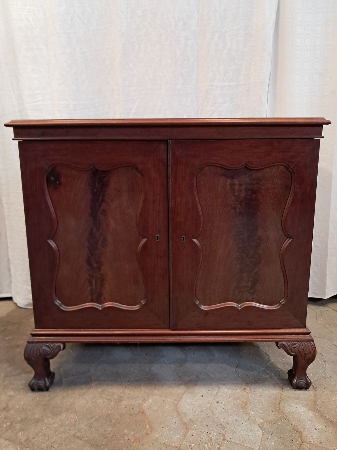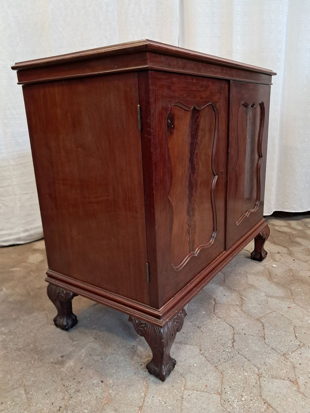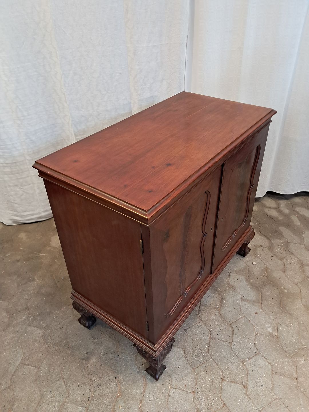 Skab i fineret mahogni, fra 1920erne.Det har brugsspor.