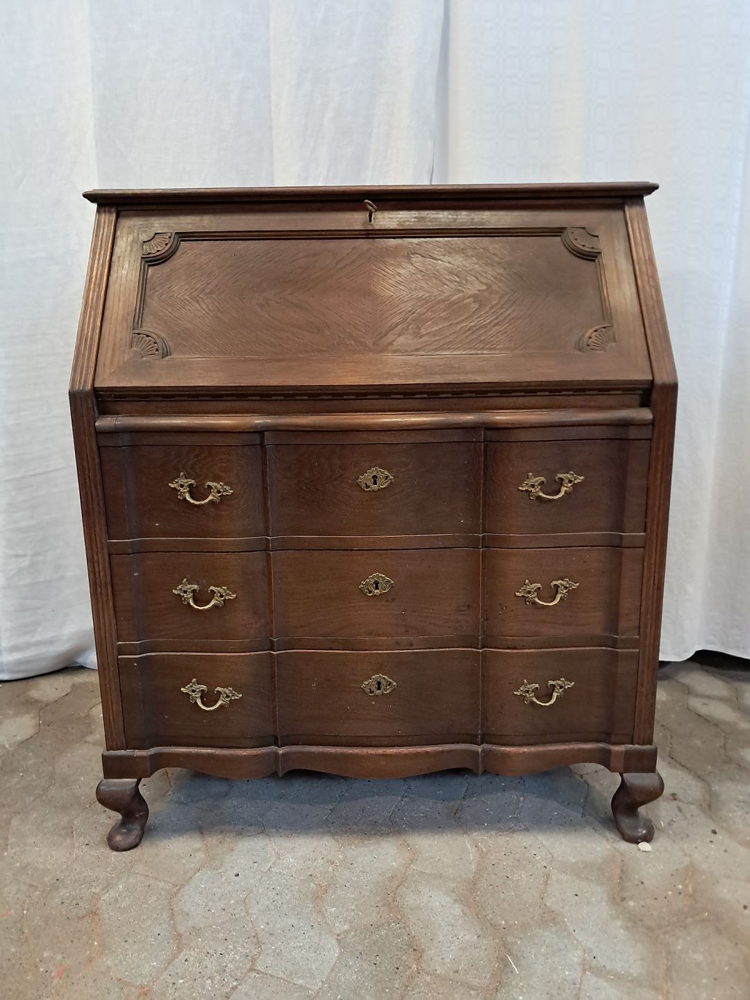 Chatol i fineret egetræ, fra 1980erne.Det har brugsspor og et brændemærke.