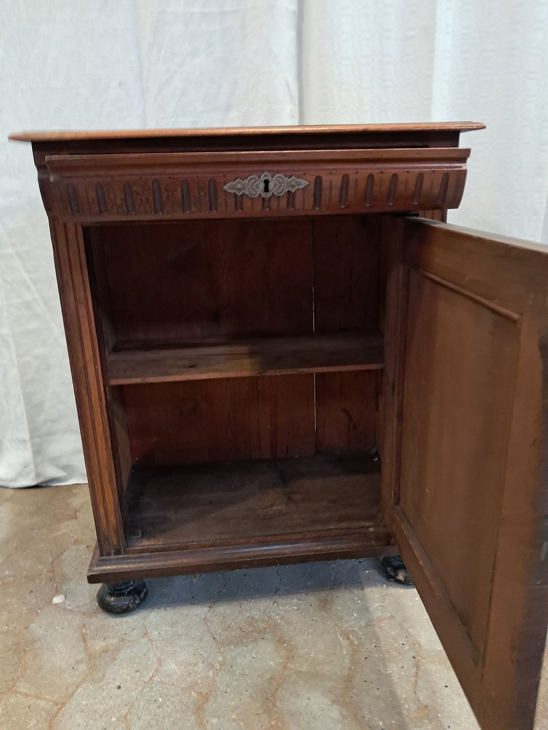 Konsolskab i fineret mahogni, fra 1900erne.Det har brugsspor.