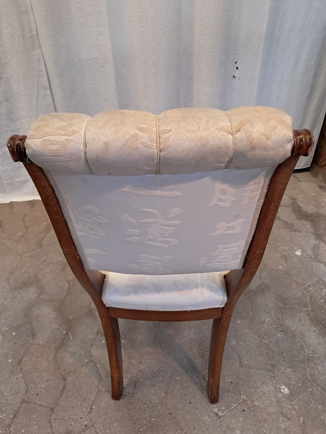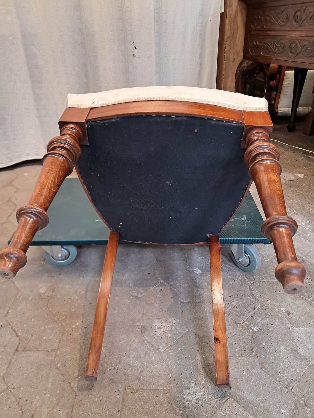 Salonstol i massivt bøgetræ, fra 1910erne.Betrækket har lidt brugsspor.