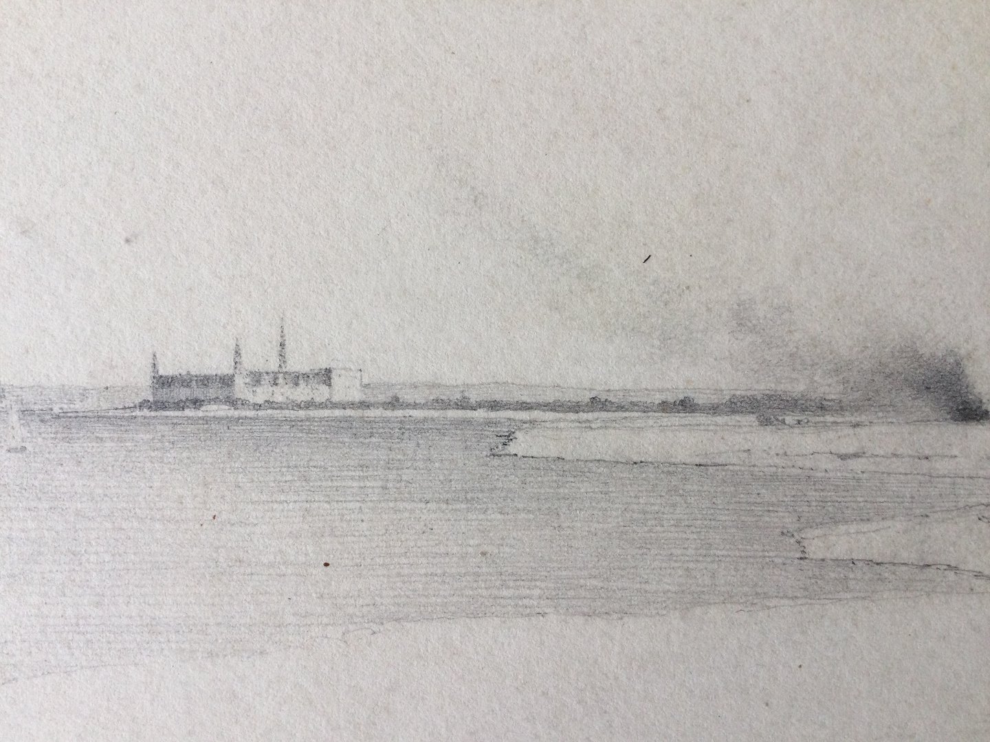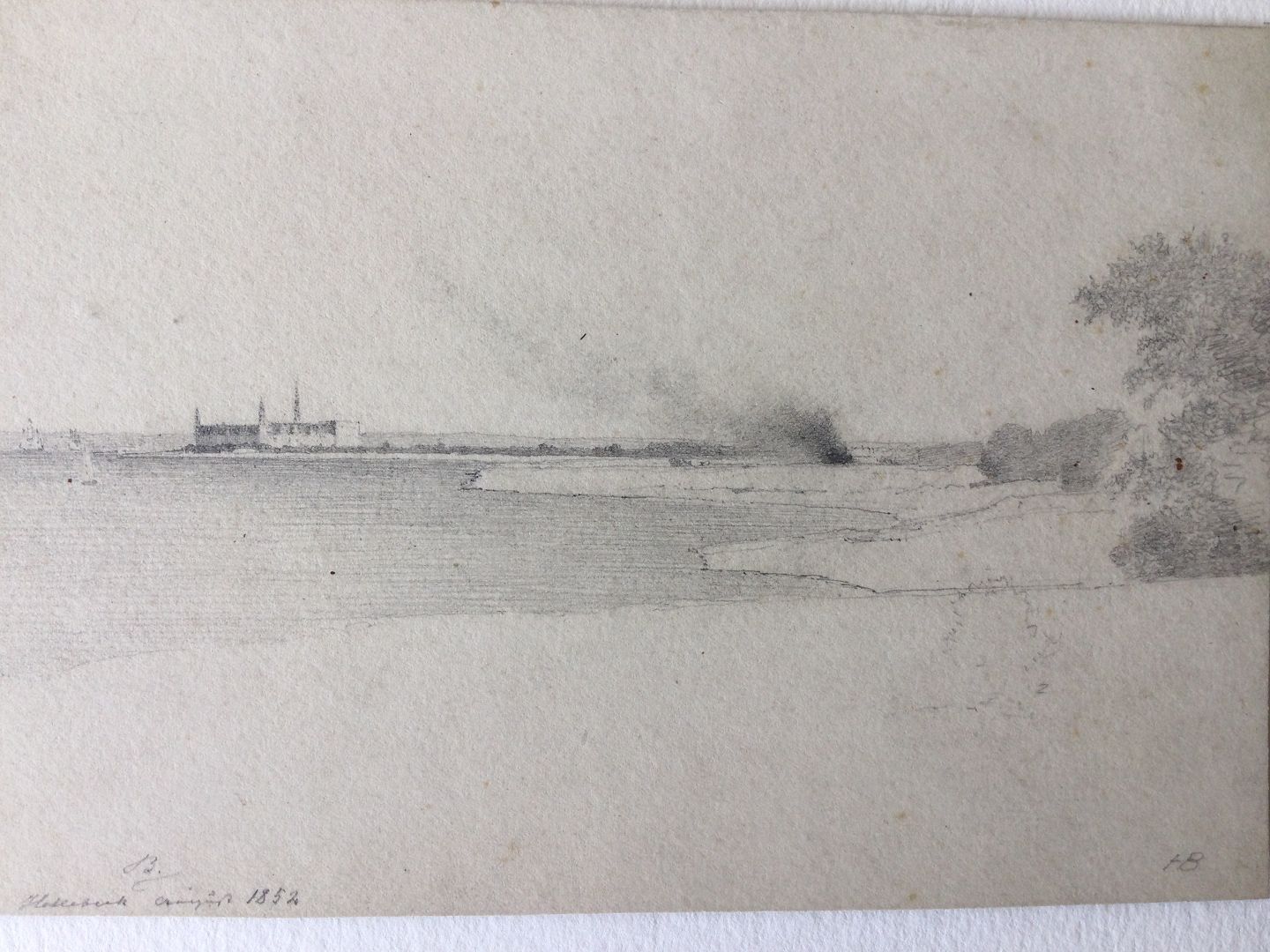 Tegning af Heinrich Buntzen - Udsigt fra Hellebæk mod Kronborg 1852.