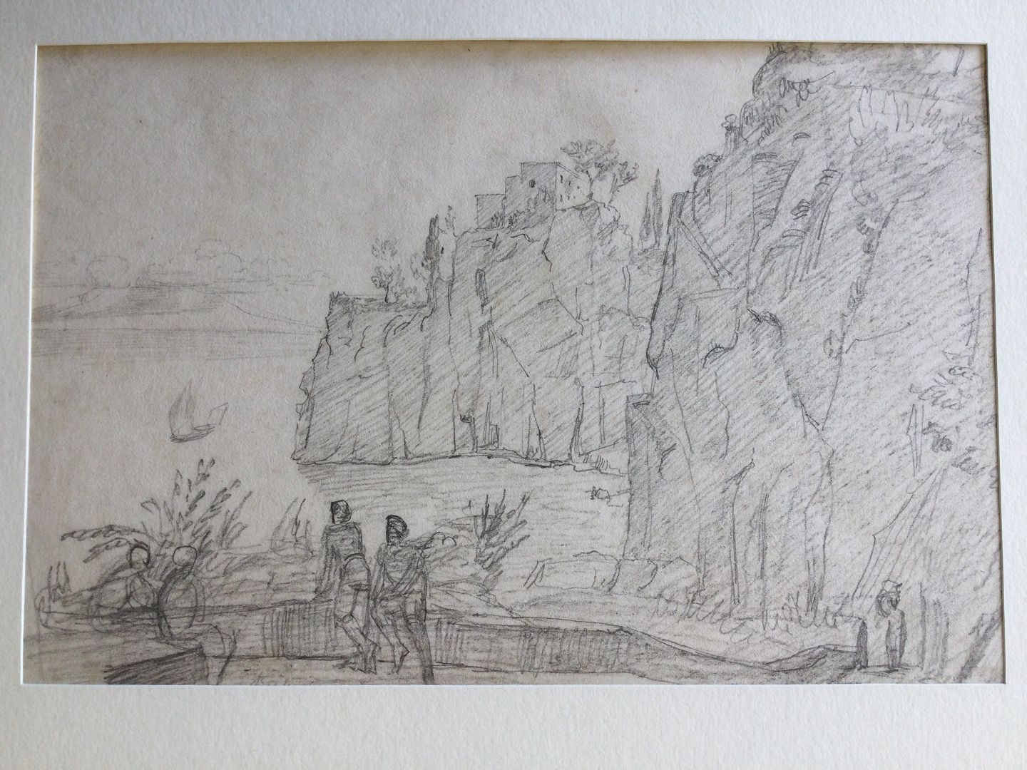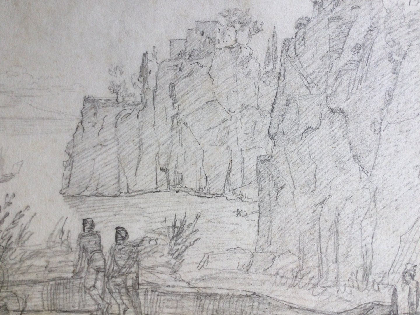 Ubekendt kunstner (19/20 årh):Personer ved Klippeformation samt bygningsværker.