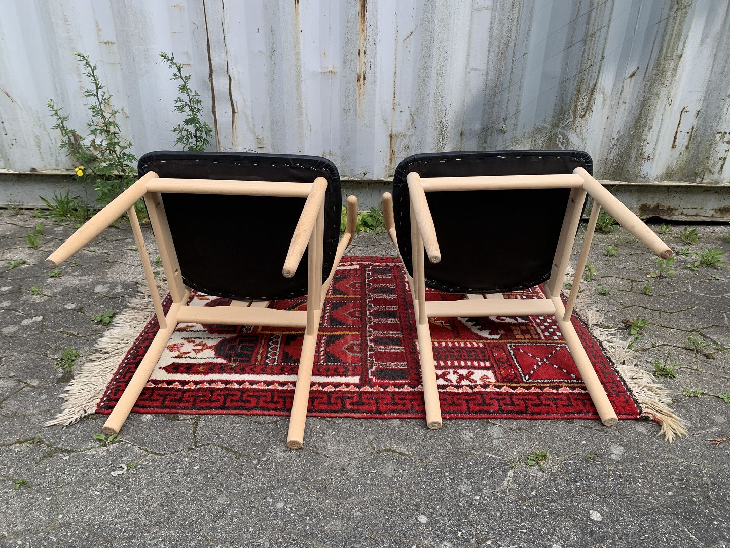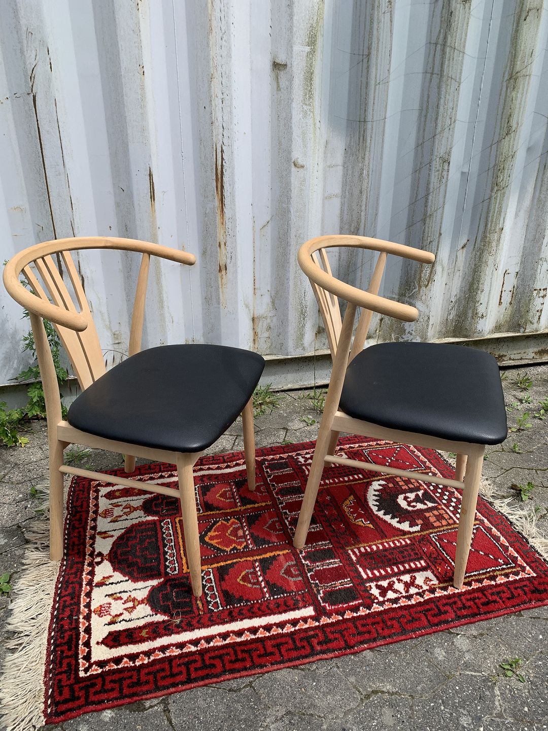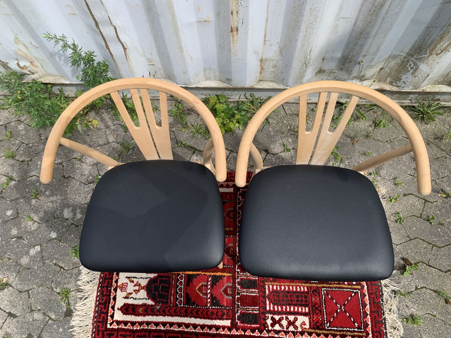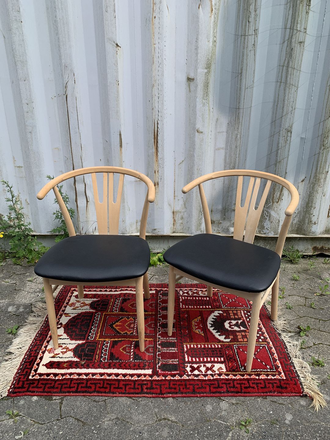 2 stole i massivt bøgetræ med kunstlæder betræk, fra 2010erne.De har små brugsspor.