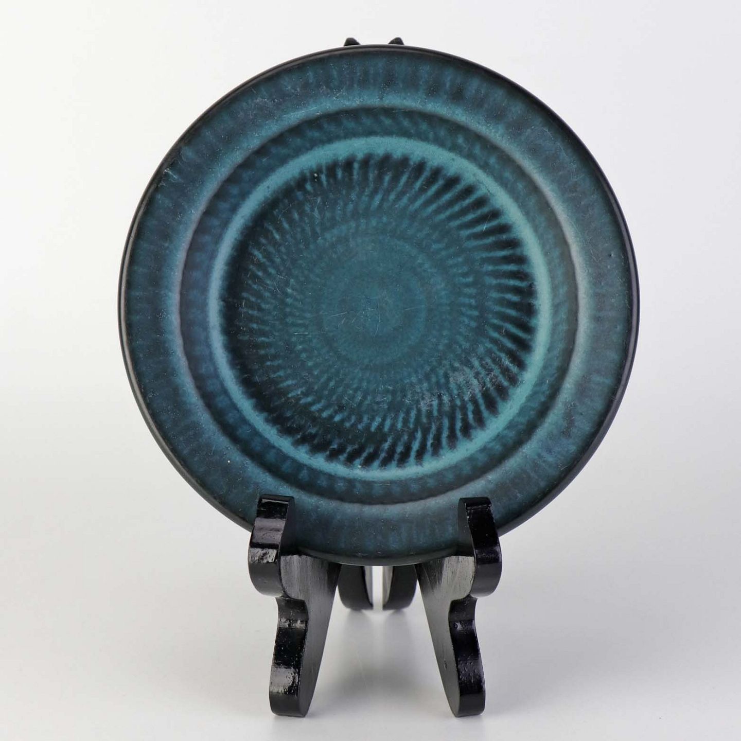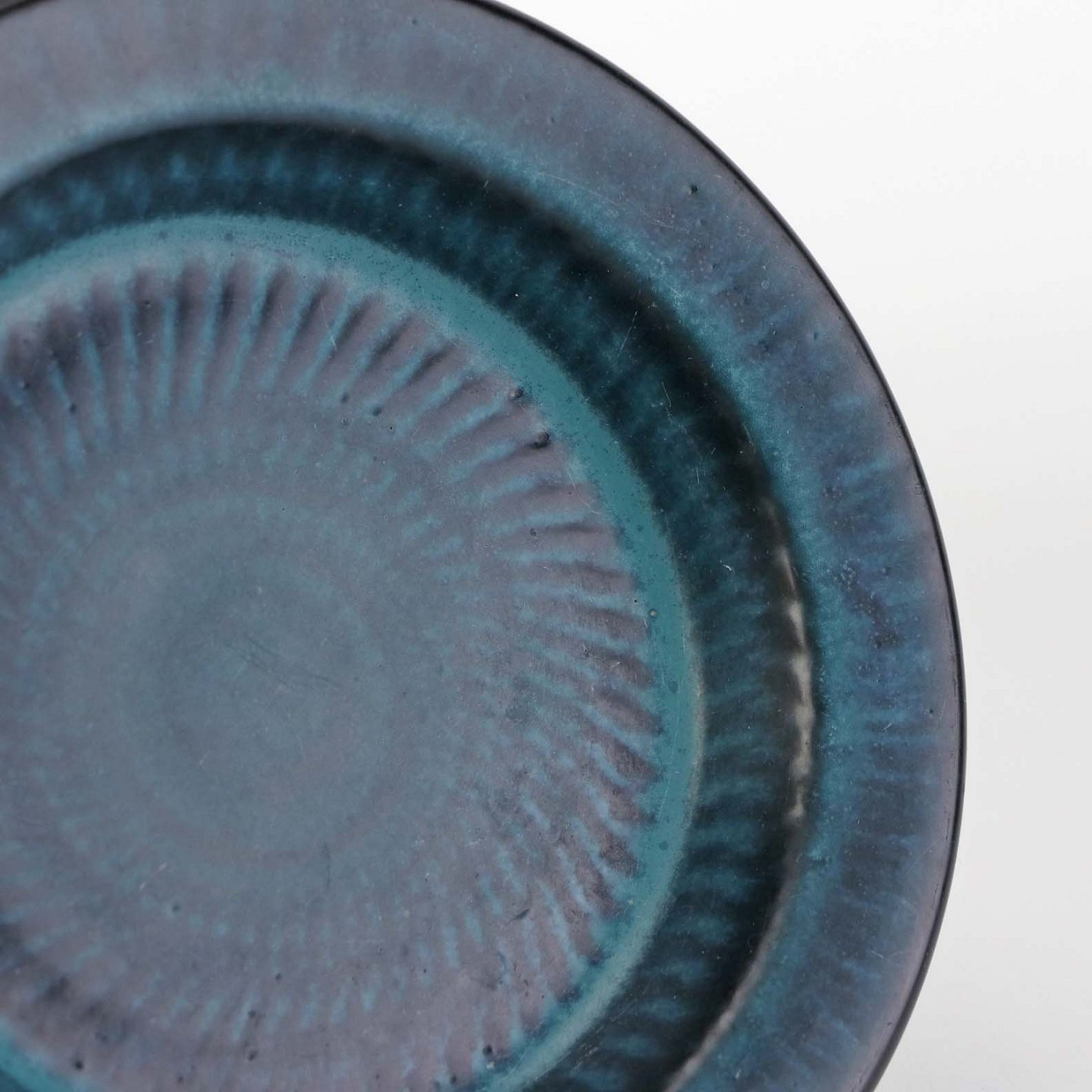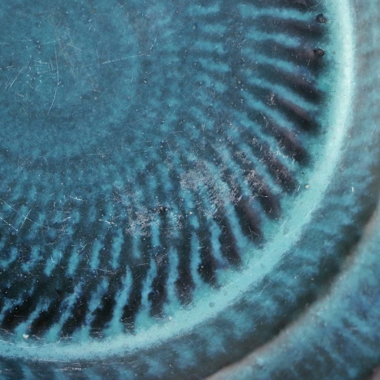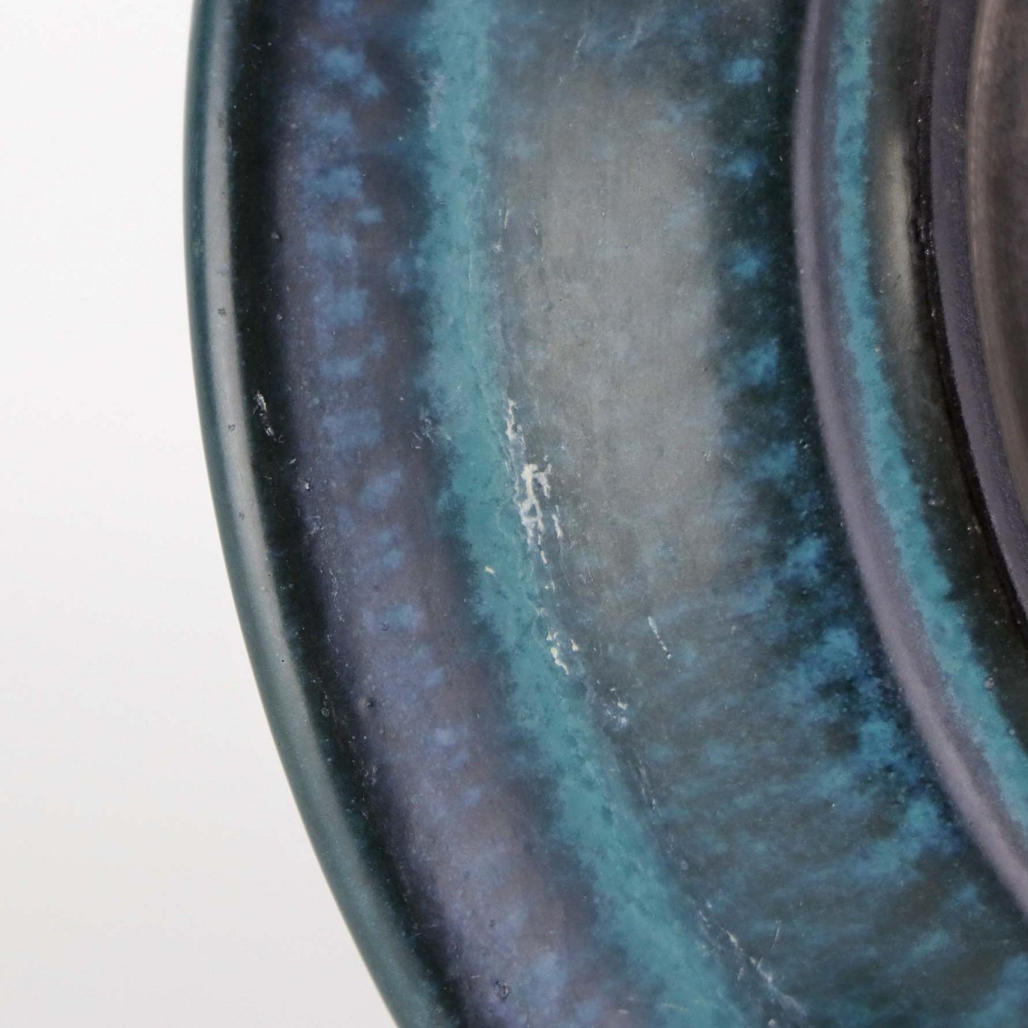 Fremstår med brugsspor og lettere ridser i glasuren på indersiden og bagsiden.