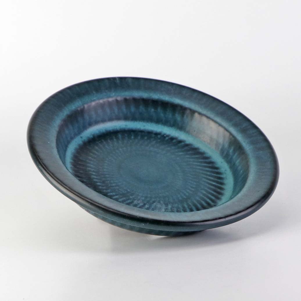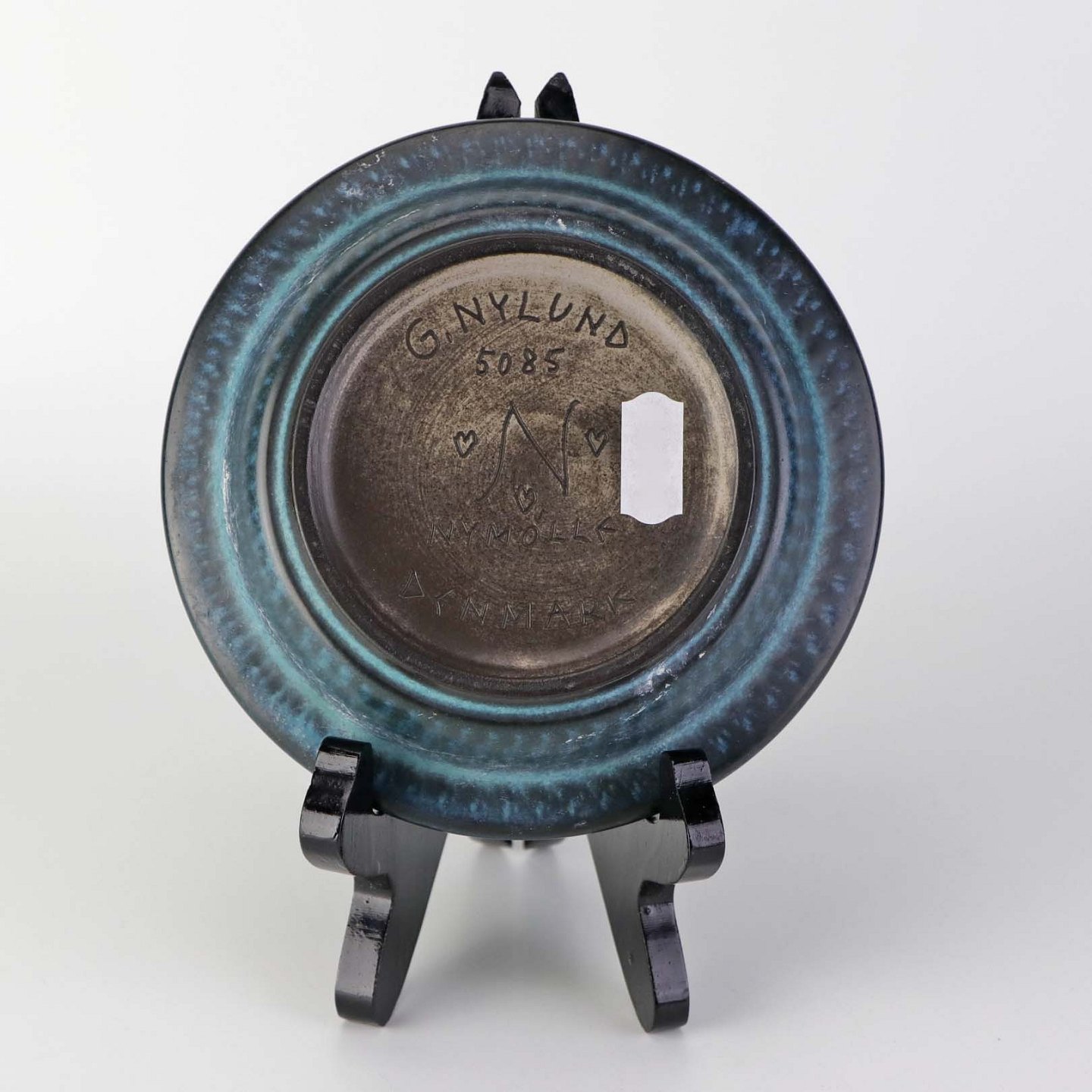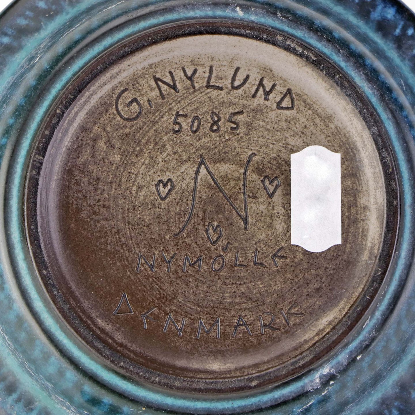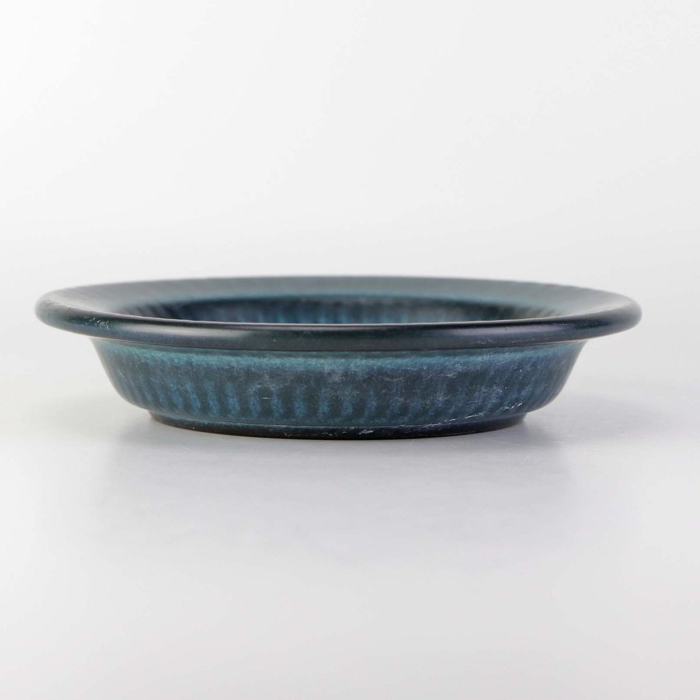Mindre skål i blågrøn glaseret stentøj. Nr. 5085Formgiver Gunnar Nylund