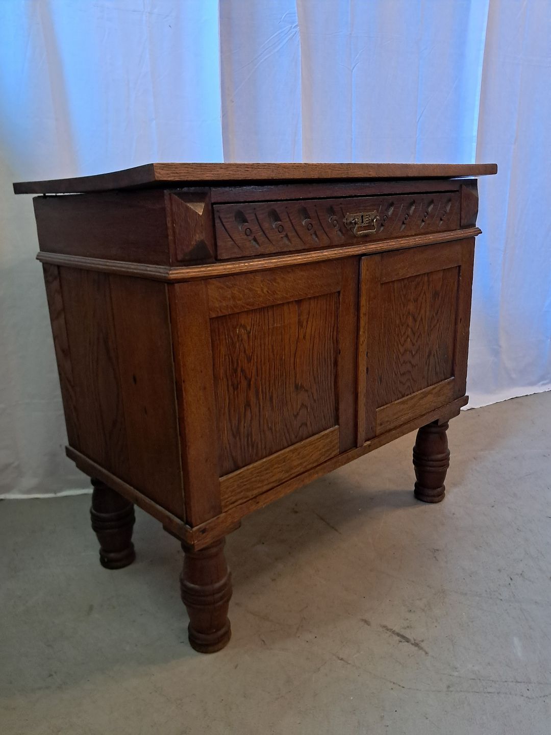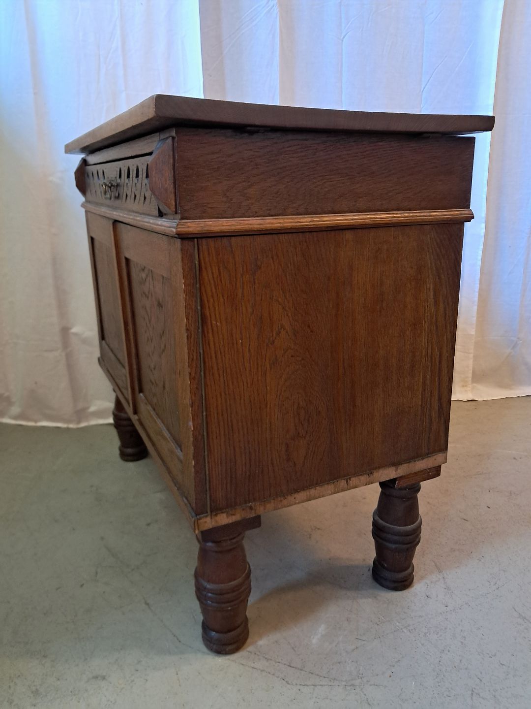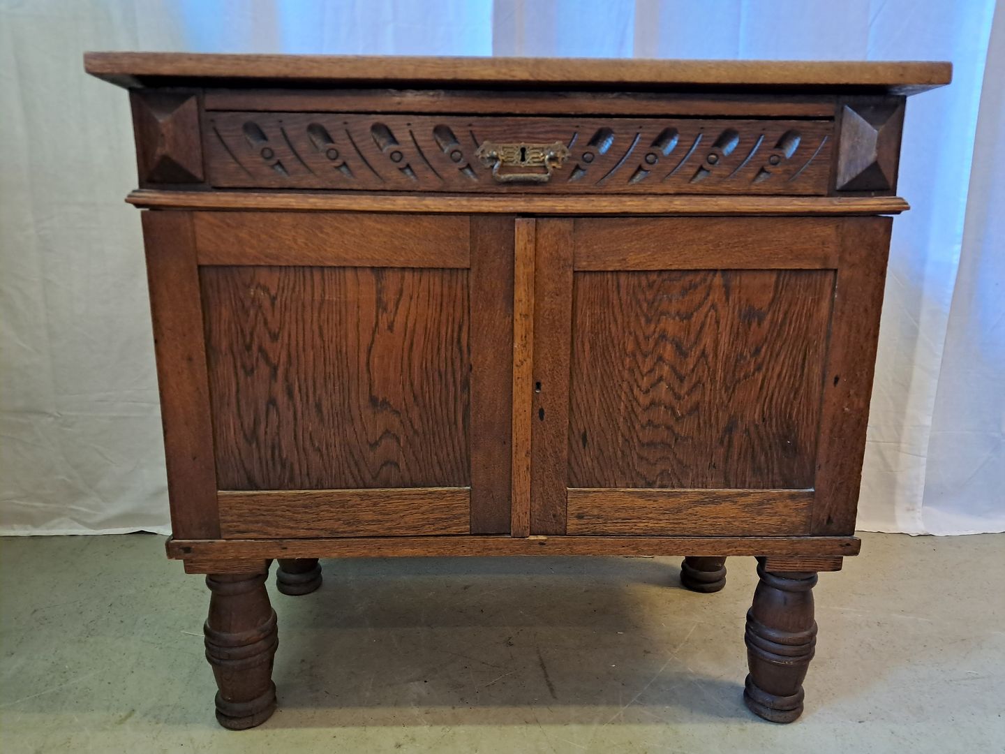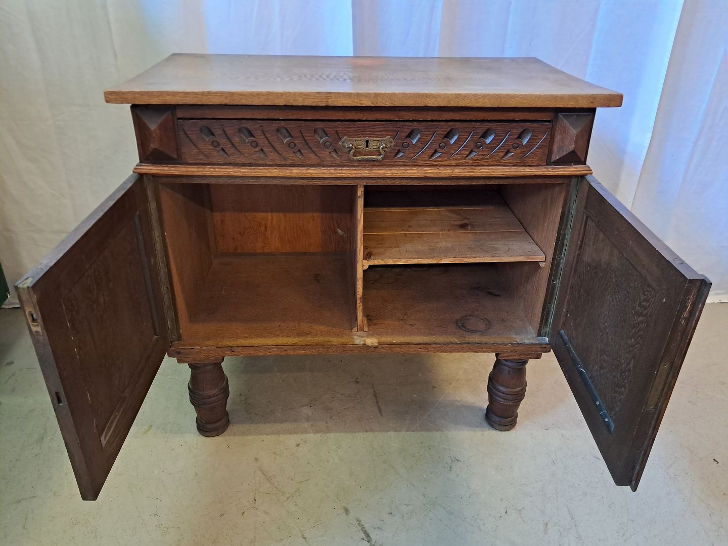 Skab i massivt egetræ, fra 1910erne.Det har brugsspor.