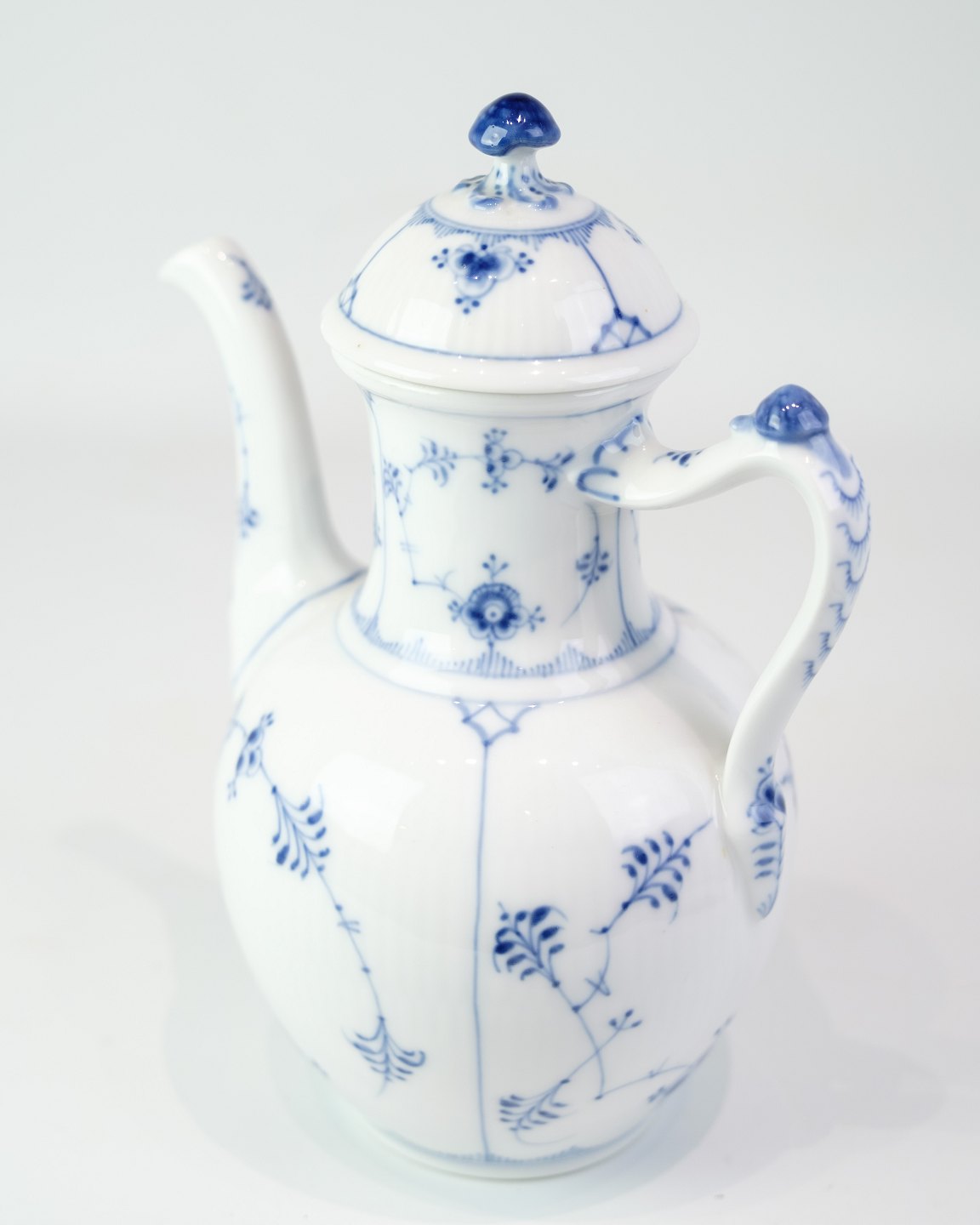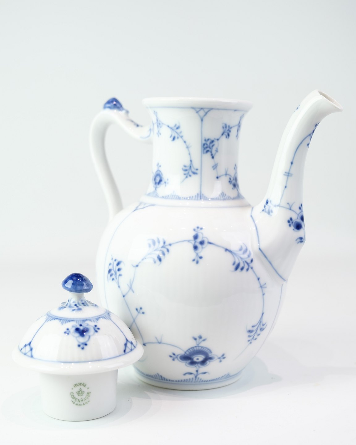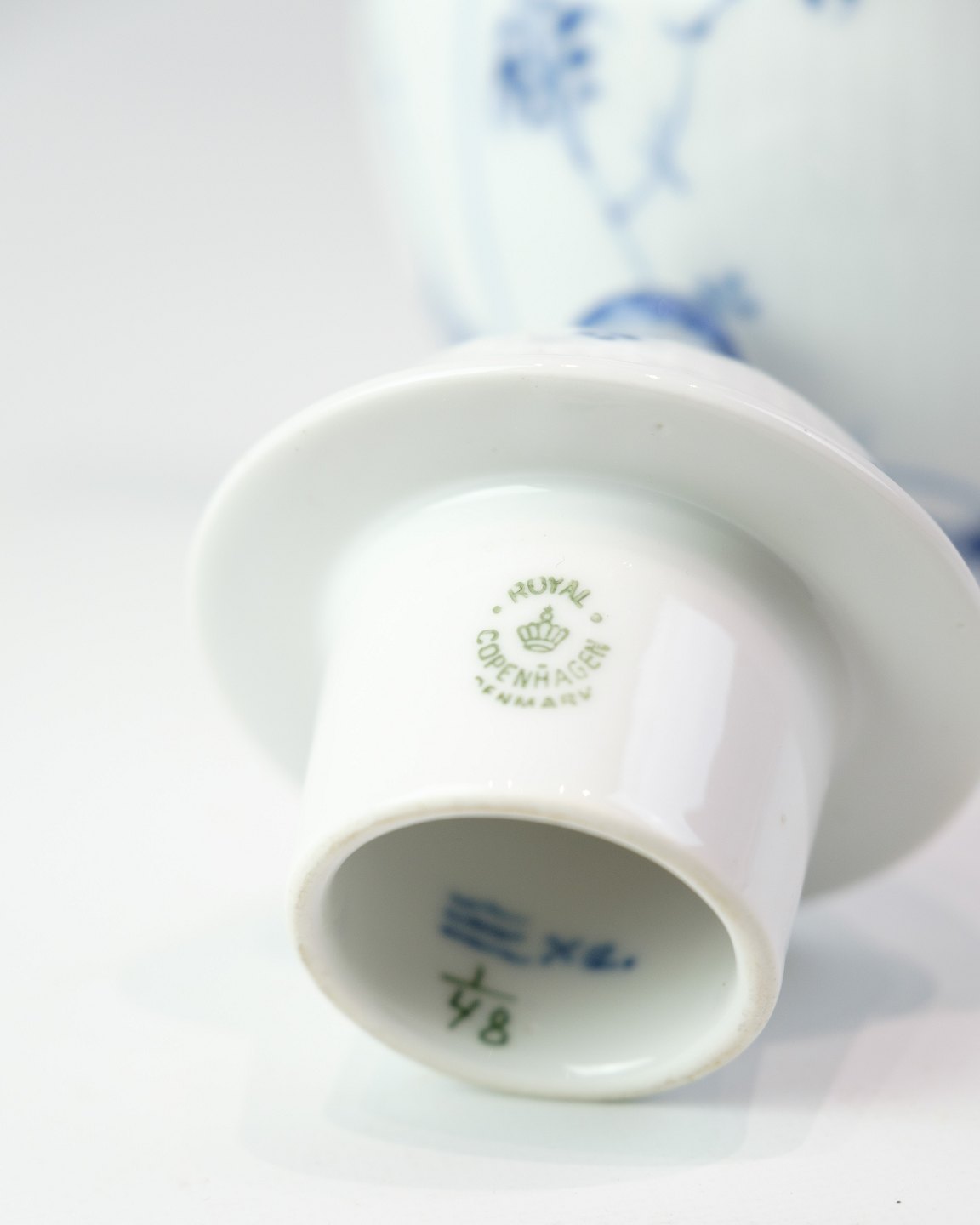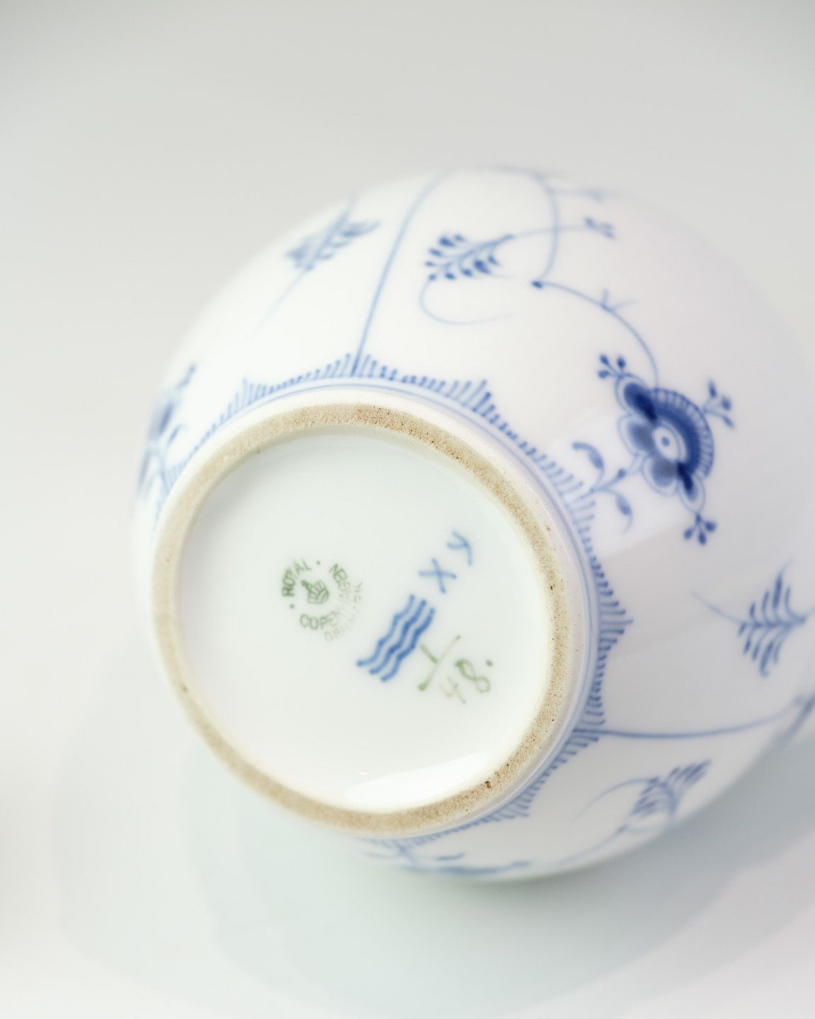 Krug von Royal Copenhagen im klassischen Blaue-Gerappt-Dekor. Das Modell ist Nr. 1/48 und aus handbemaltem Porzellan gefertigt. Blaue Gerippt wurde ursprünglich 1775 entworfen und gehört bis heute zu den ikonischsten Serien von Royal Copenhagen.Material: Porzellan