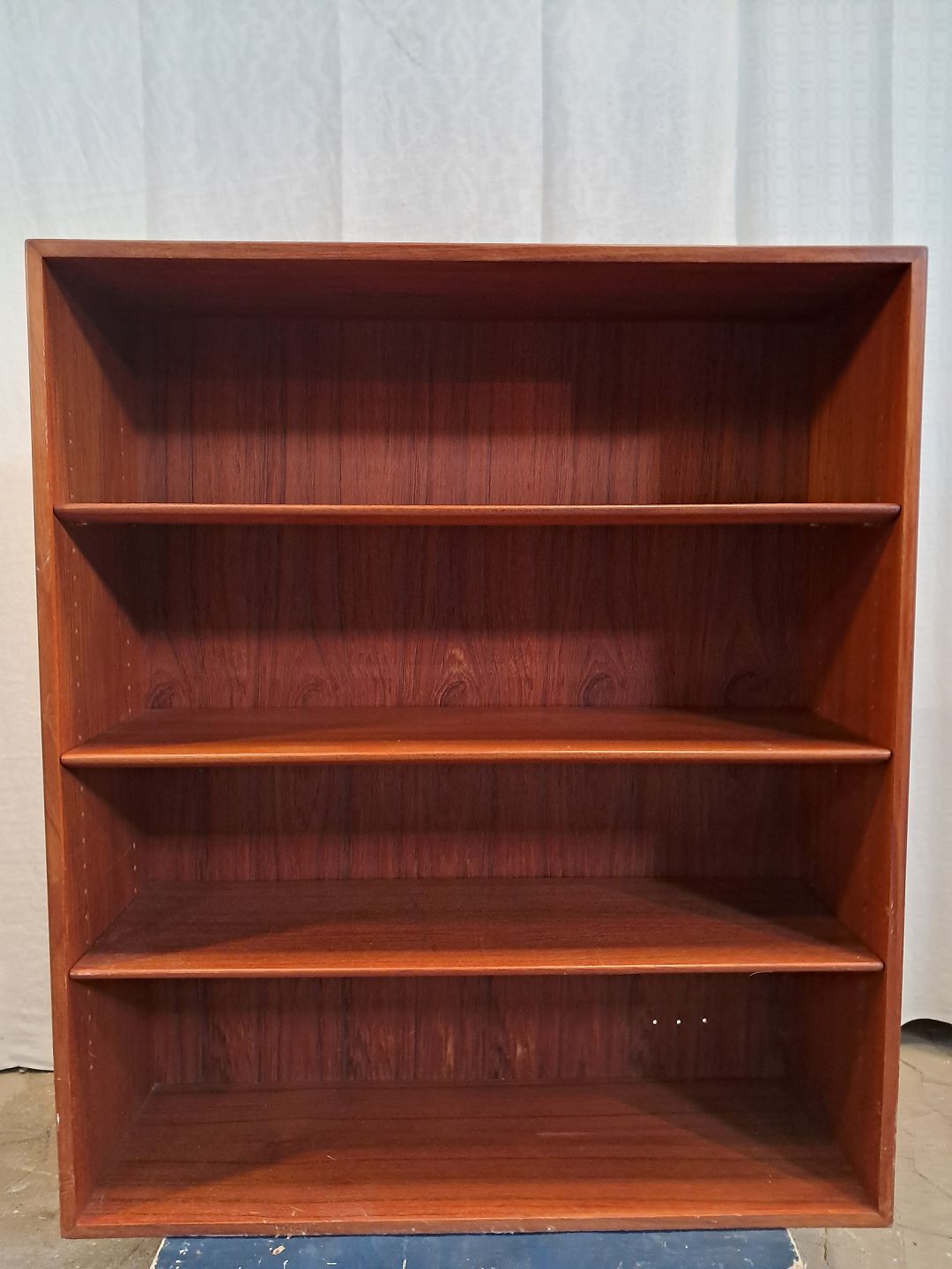 Reol i fineret teaktræ, fra 1960erne.Den har brugsspor.