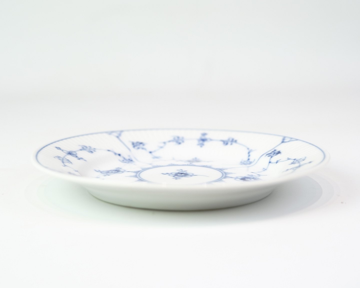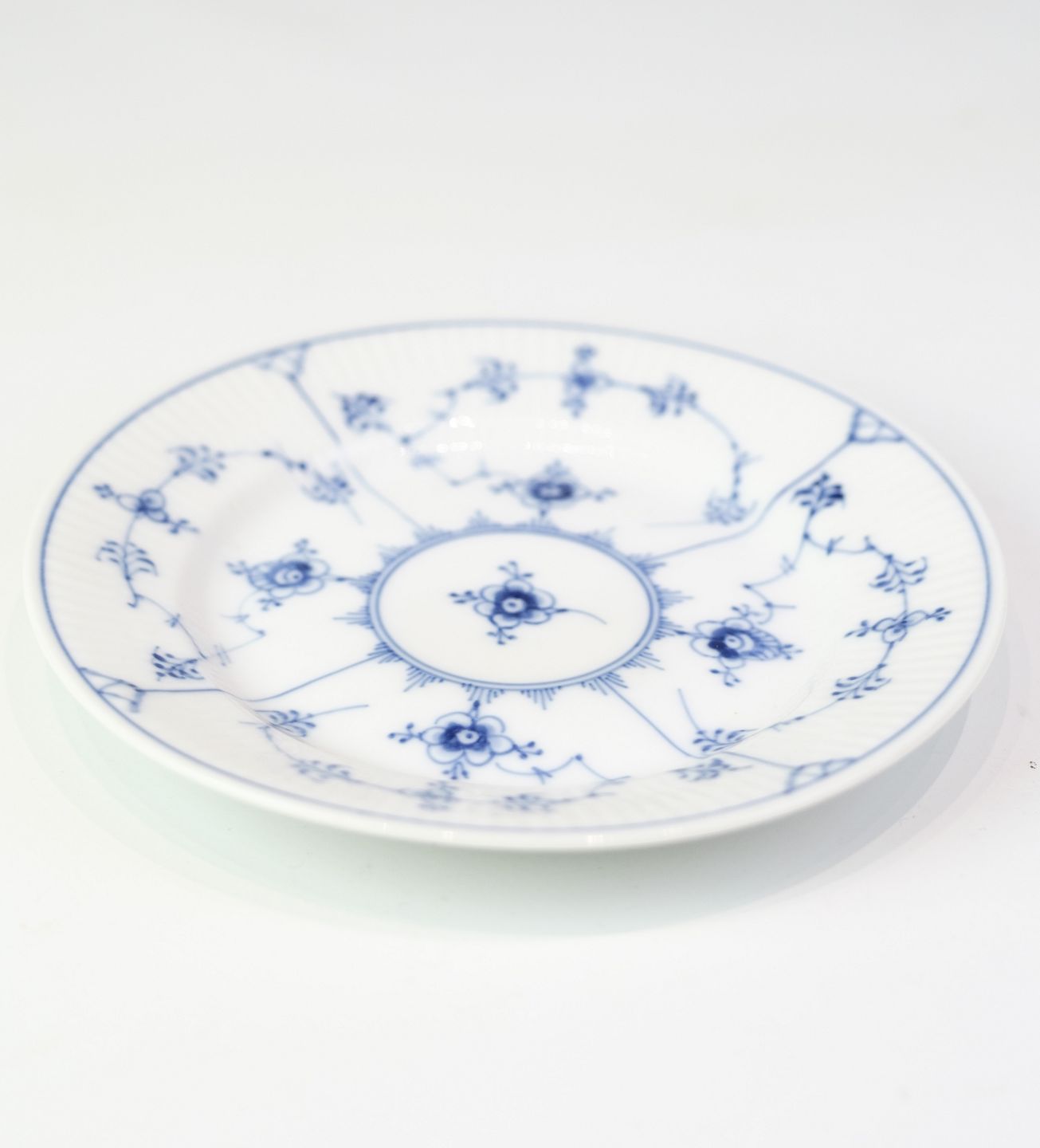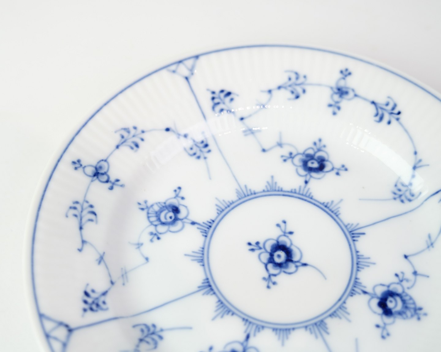 Kagetallerken fra Royal Copenhagen i musselmalede riflet mønster. Model No. 1/181 og er håndmalet i koboltblå på hvidt porcelæn med de berømte riflede detaljer. En fin størrelse til servering af kage, dessert eller småretter Materiale: Porcelæn