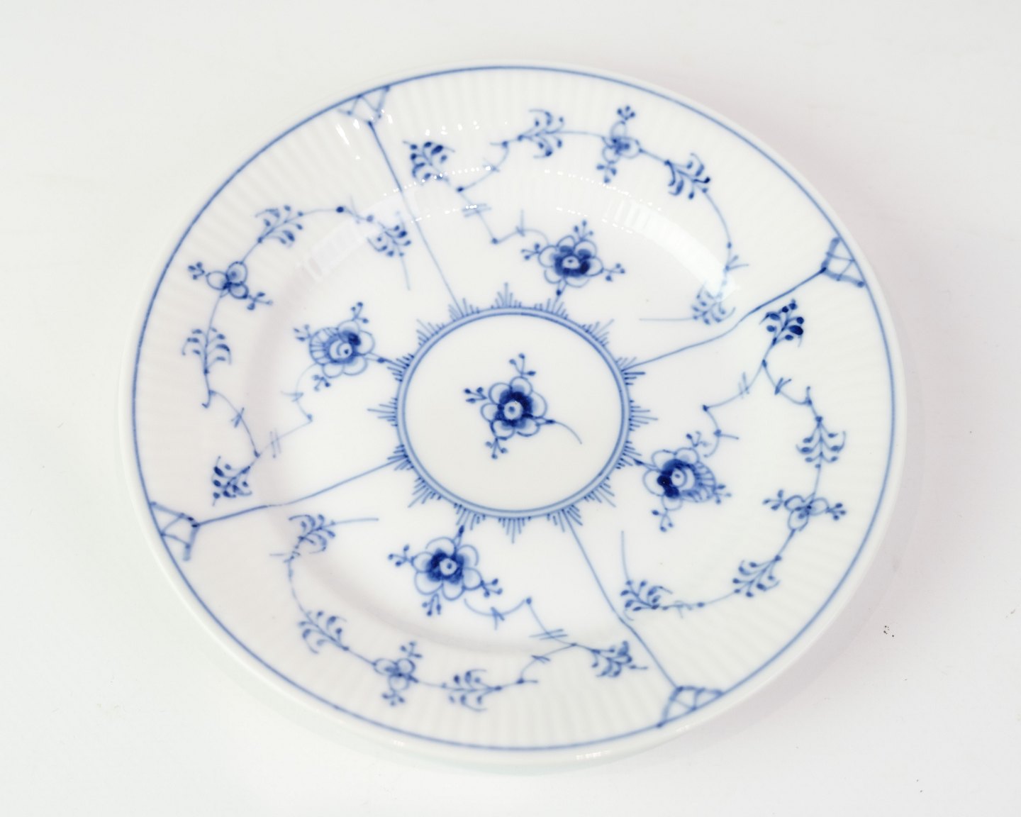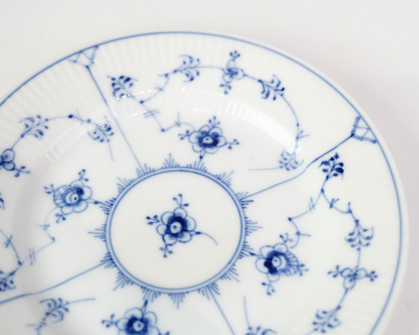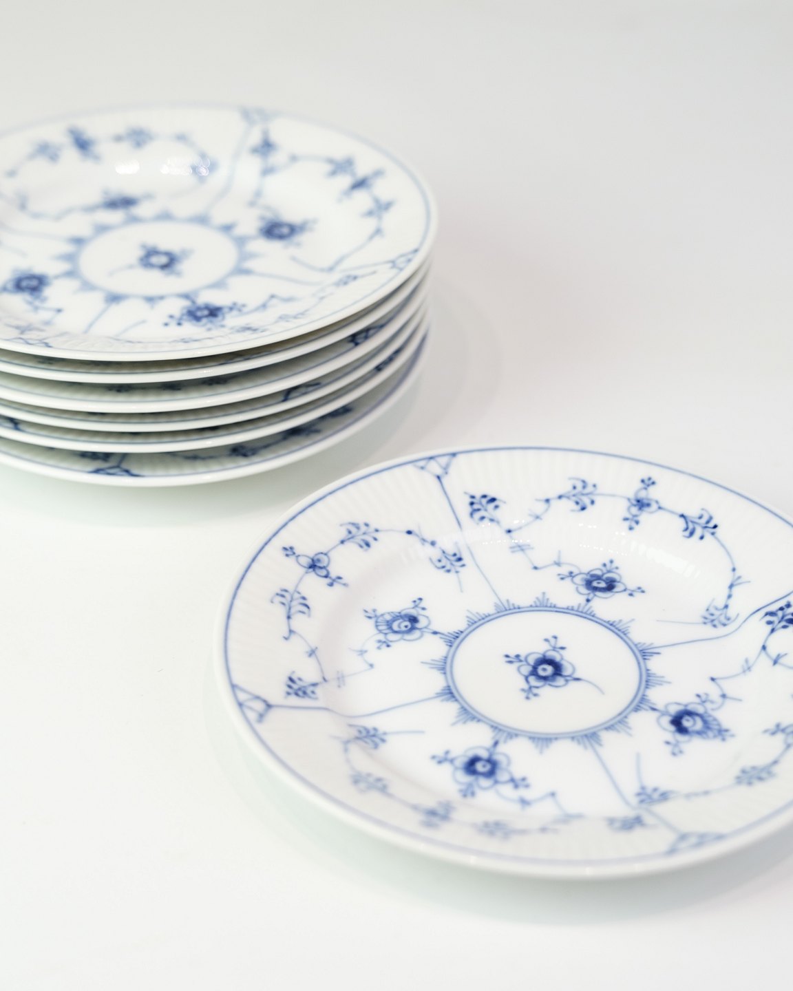 Kagetallerken fra Royal Copenhagen i musselmalede riflet mønster. Model No. 1/181 og er håndmalet i koboltblå på hvidt porcelæn med de berømte riflede detaljer. En fin størrelse til servering af kage, dessert eller småretter Materiale: Porcelæn