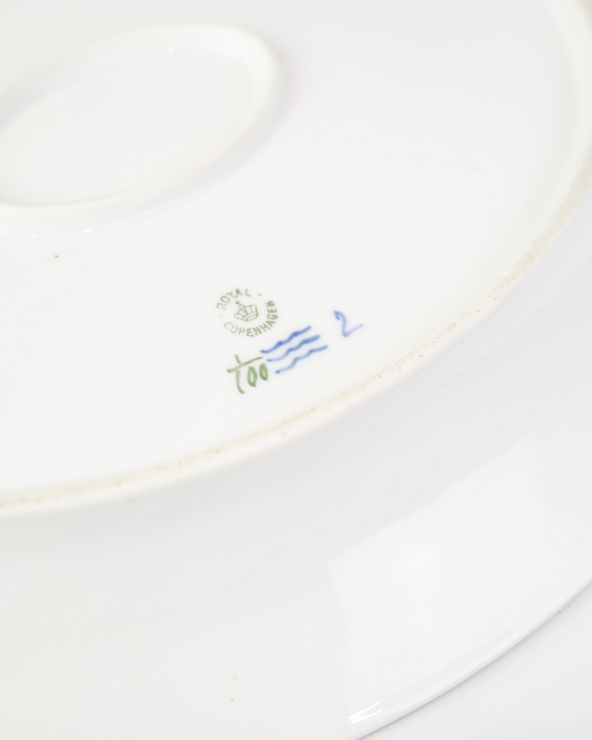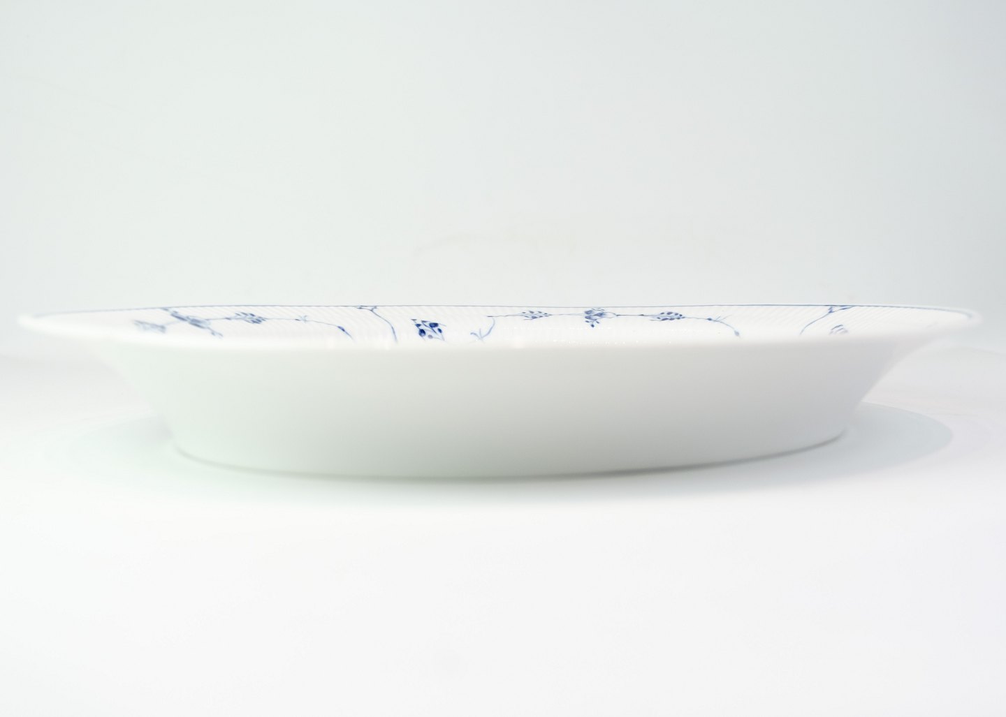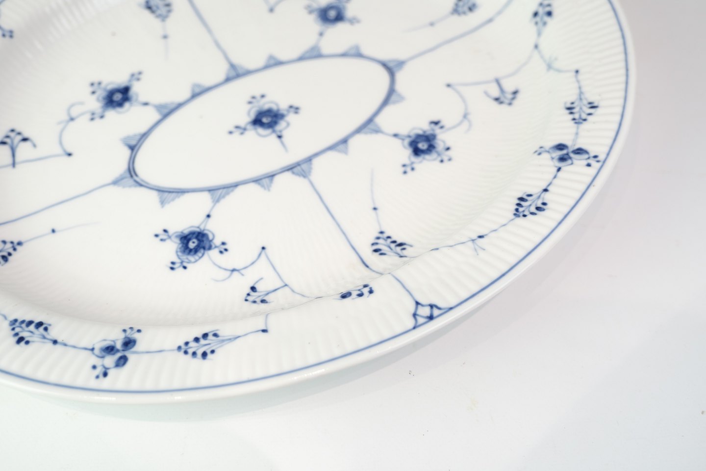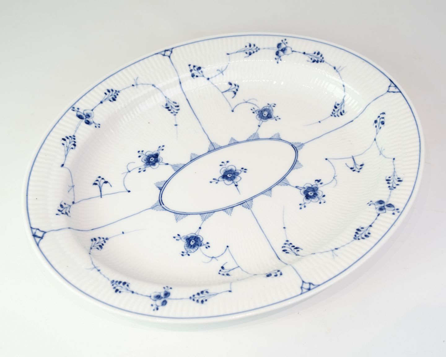 Große Servierplatte von Royal Copenhagen im klassischen Blaue-Gerappt-Dekor. Entworfen von Arnold Krog im späten 19. Jahrhundert und gekennzeichnet durch die elegante blaue Dekoration und das gerippte Porzellan.Material: Porzellan