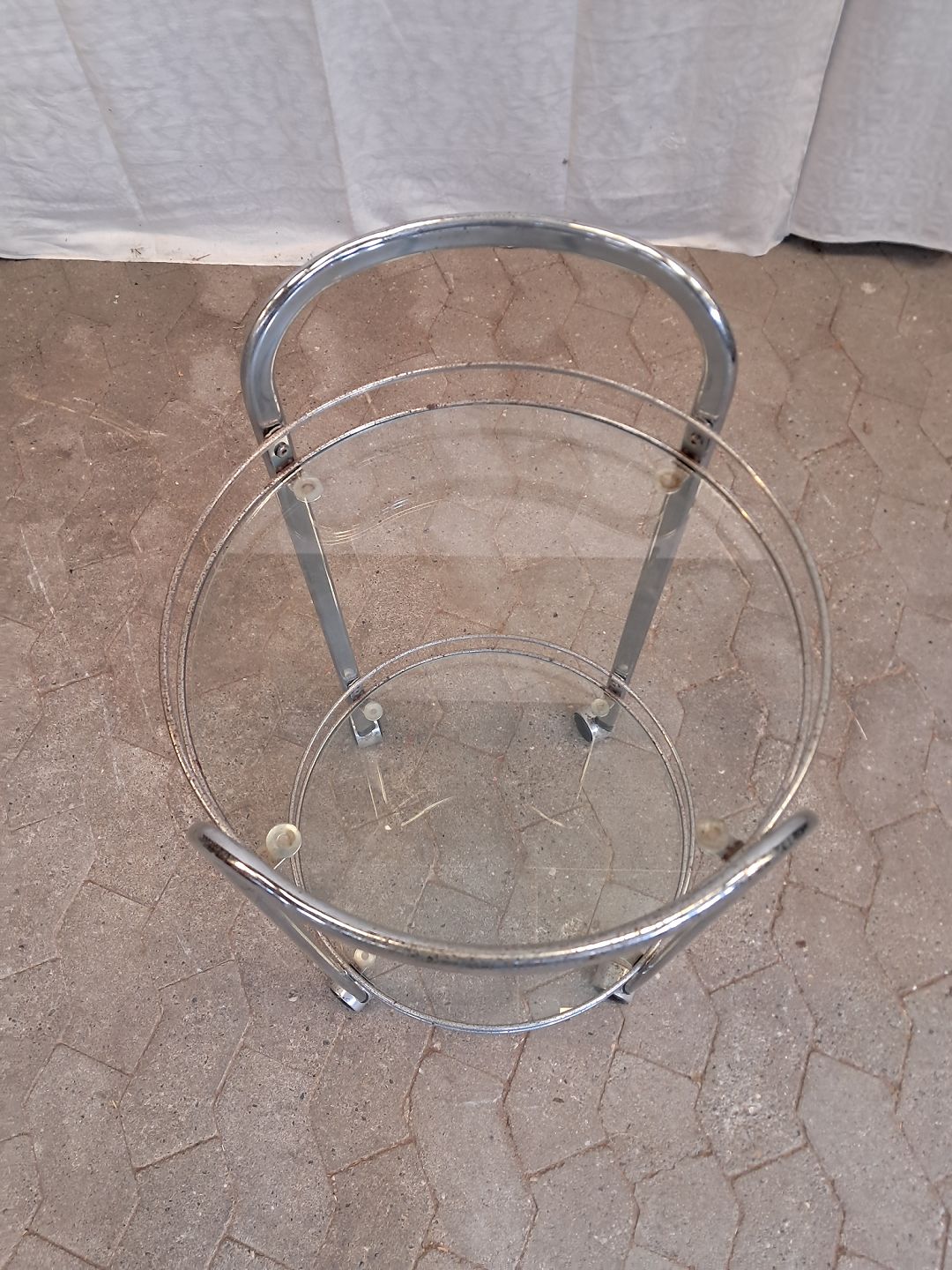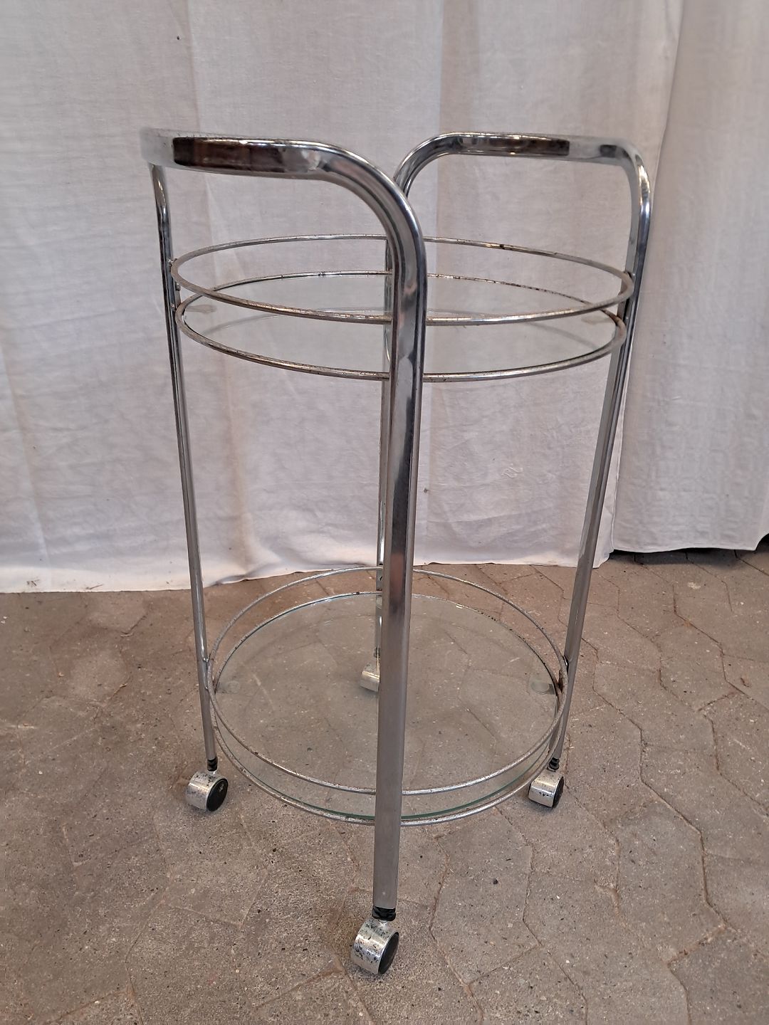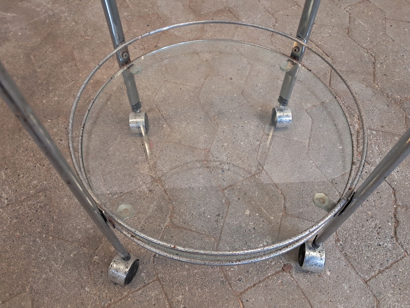 Rullebord i metal med glasplader, fra 1980erne.Det har brugsspor/rust. (se foto)