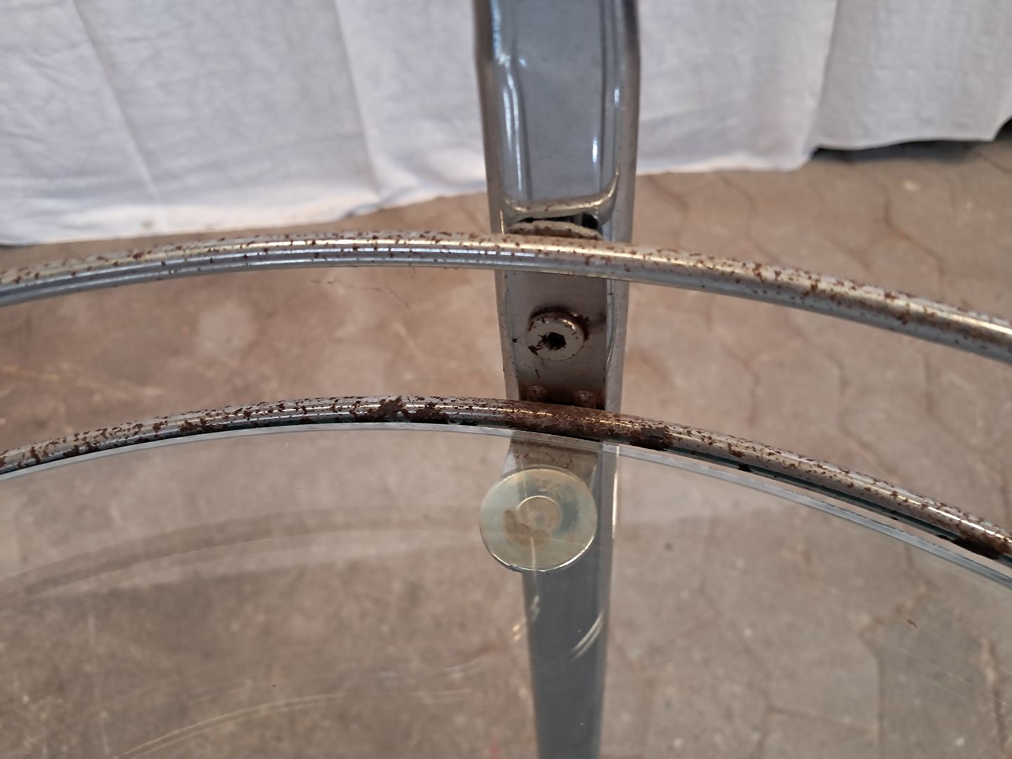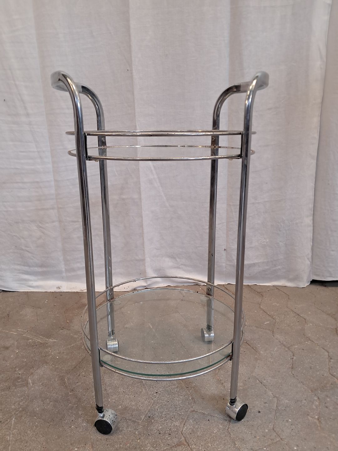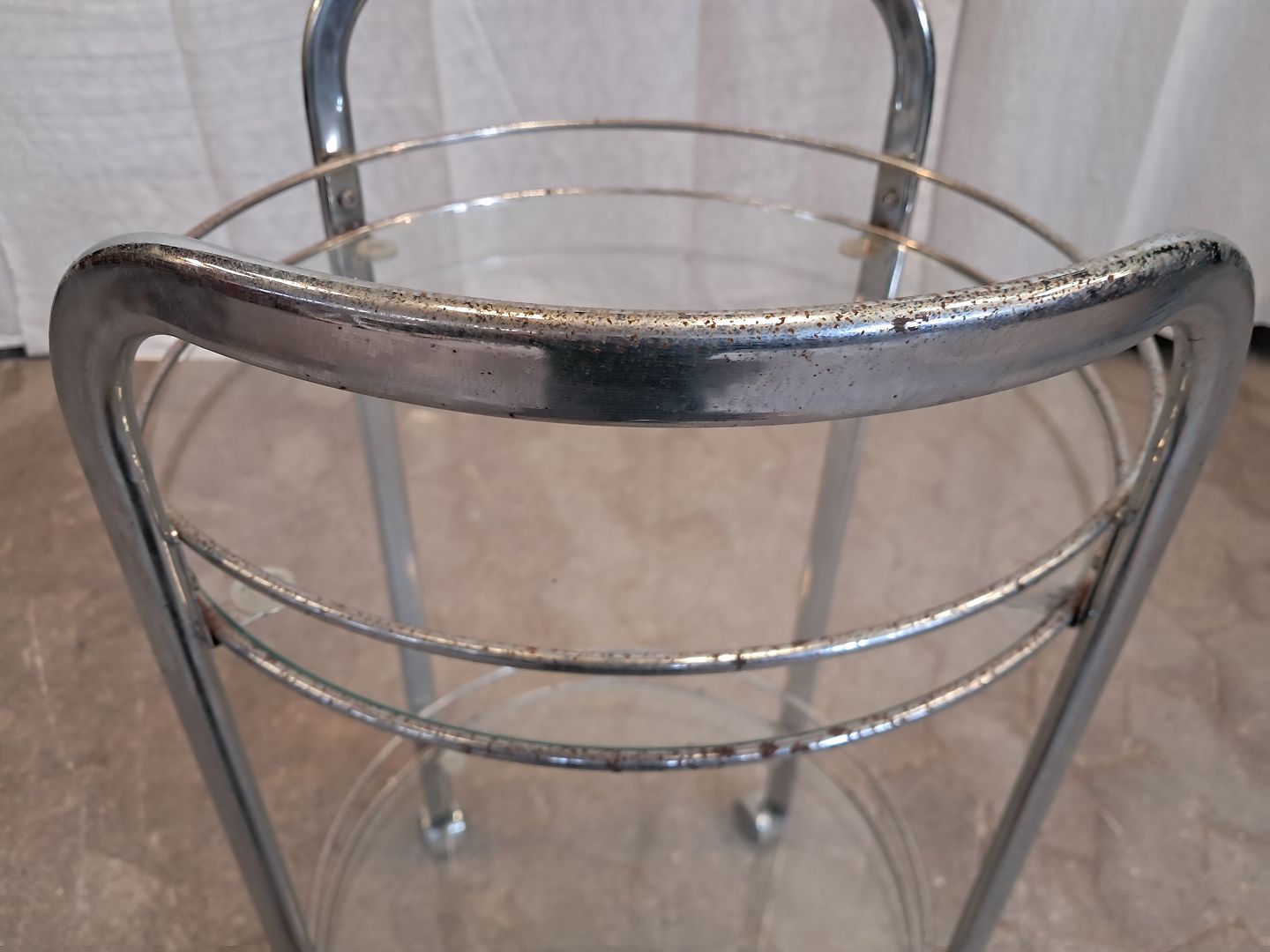 Rullebord i metal med glasplader, fra 1980erne.Det har brugsspor/rust. (se foto)