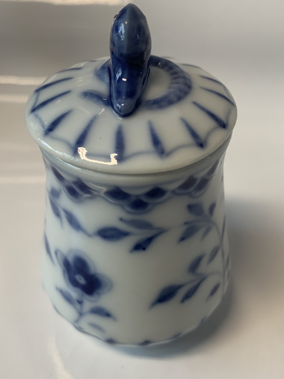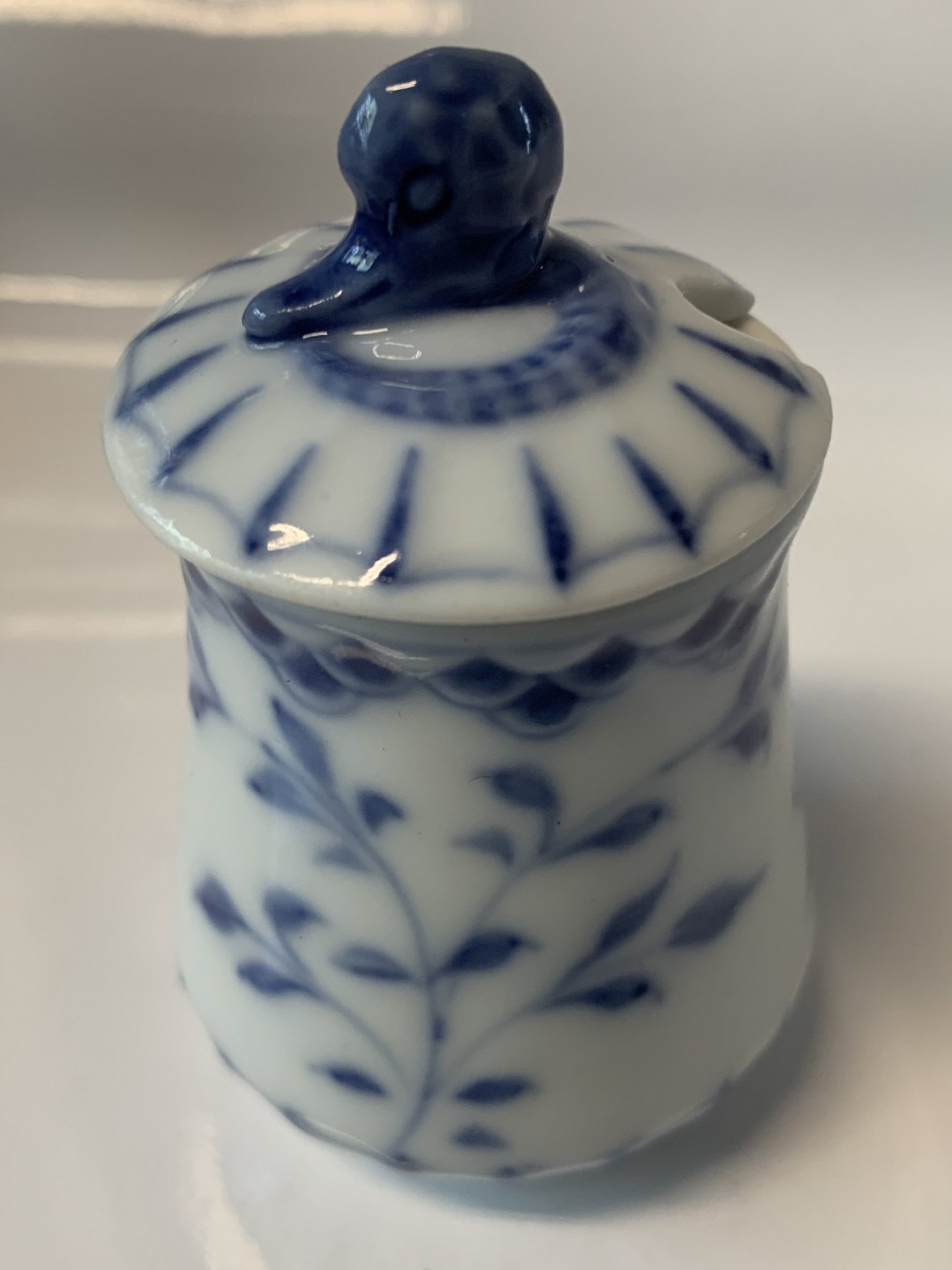 Bing & Grøndahl Sommerfugl Dickens, sennepskrukke.Produceret mellem 1915 og 1948.