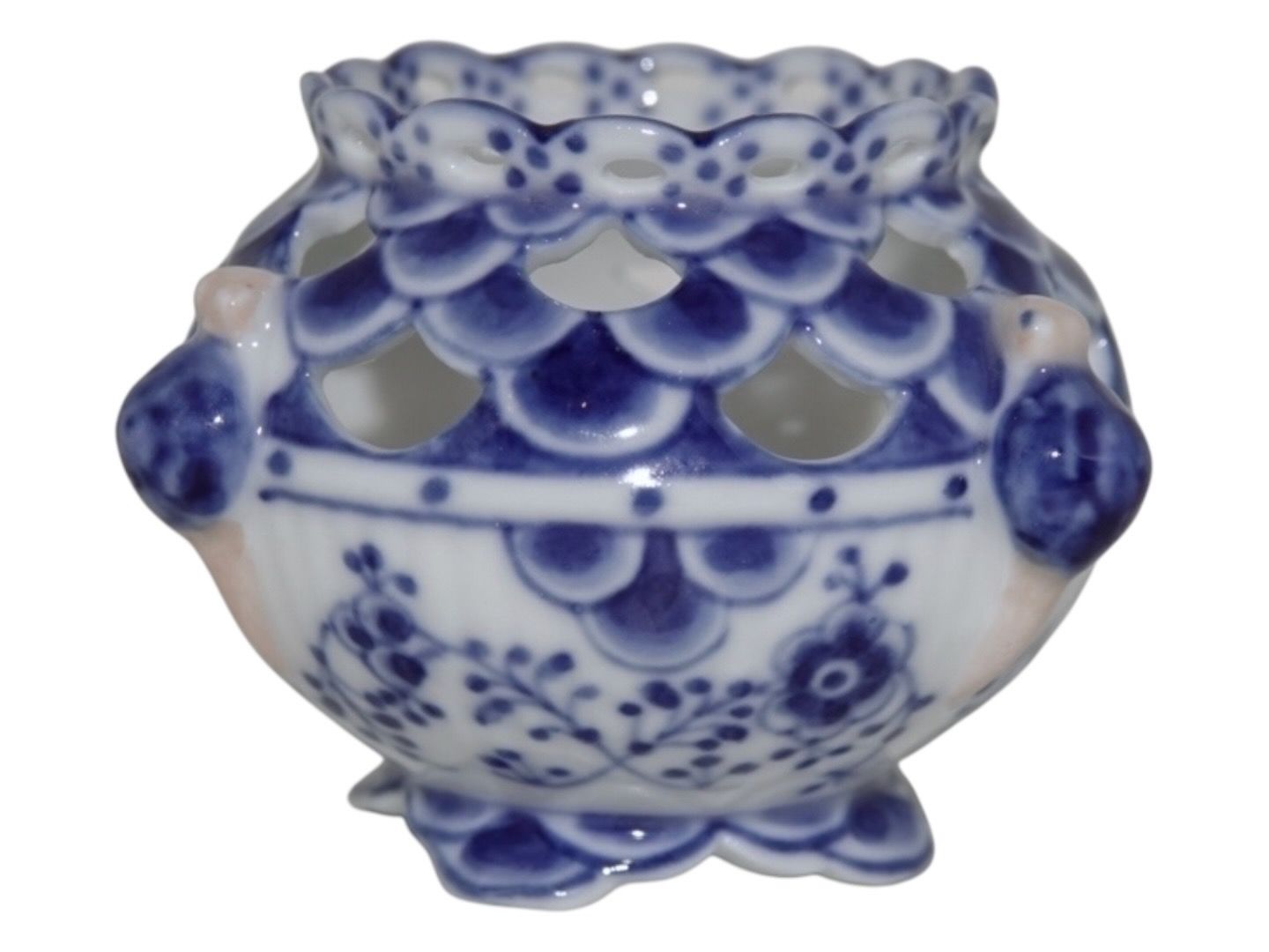 Royal Copenhagen Musselmalet Helblonde, lille kuvertvase med tre snegle.Af fabriksmærket kan det udledes, at denne er produceret før 1928.