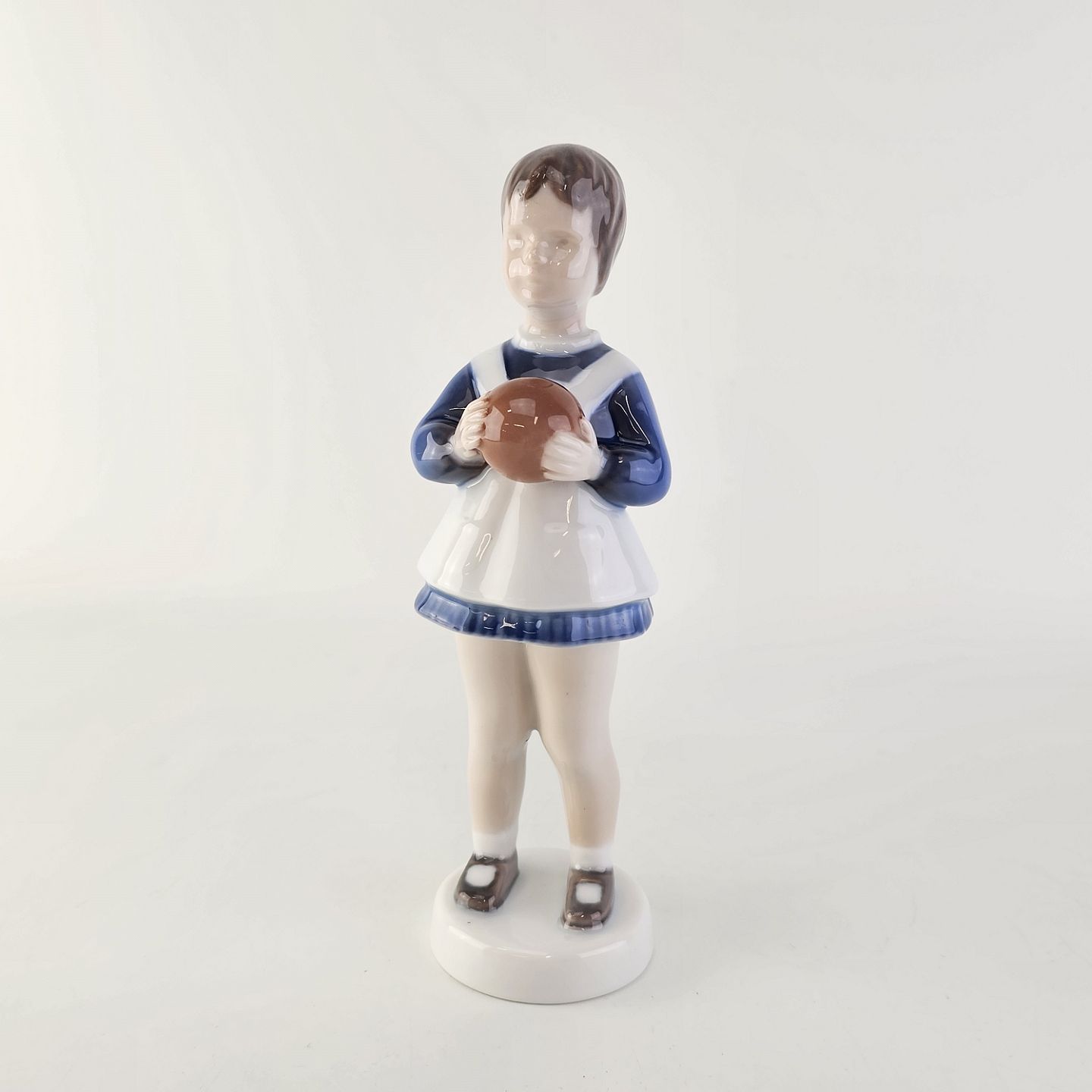 Figur i hvidt porcelæn med malede detaljer i brune, blå og røde nuancerNr 2391