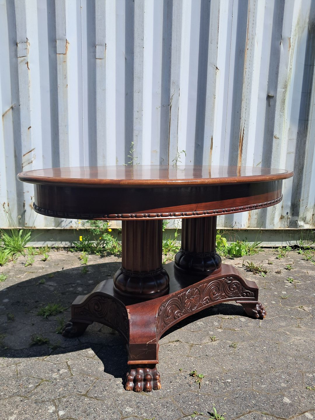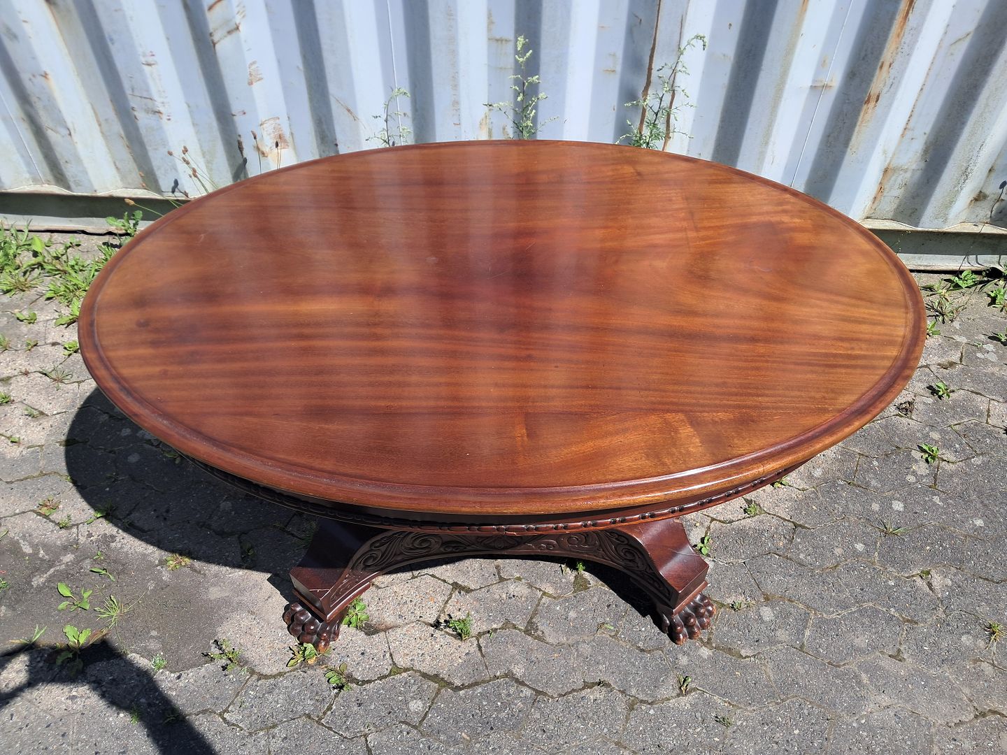Salonbord i massivt mahogni, fra 1910erne.Det har brugsspor.