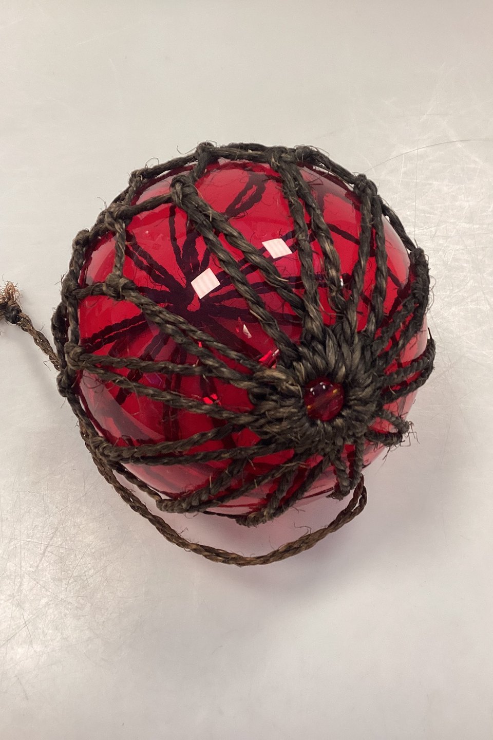 Holmegaard / Kastrup / Fyens Glasværker Dekorationskugle i net. Også kaldet fiskekugler, flydelod eller glasflydere. Designet af Michael Bang i 1967. Farve: Rubinrød med brunt net.