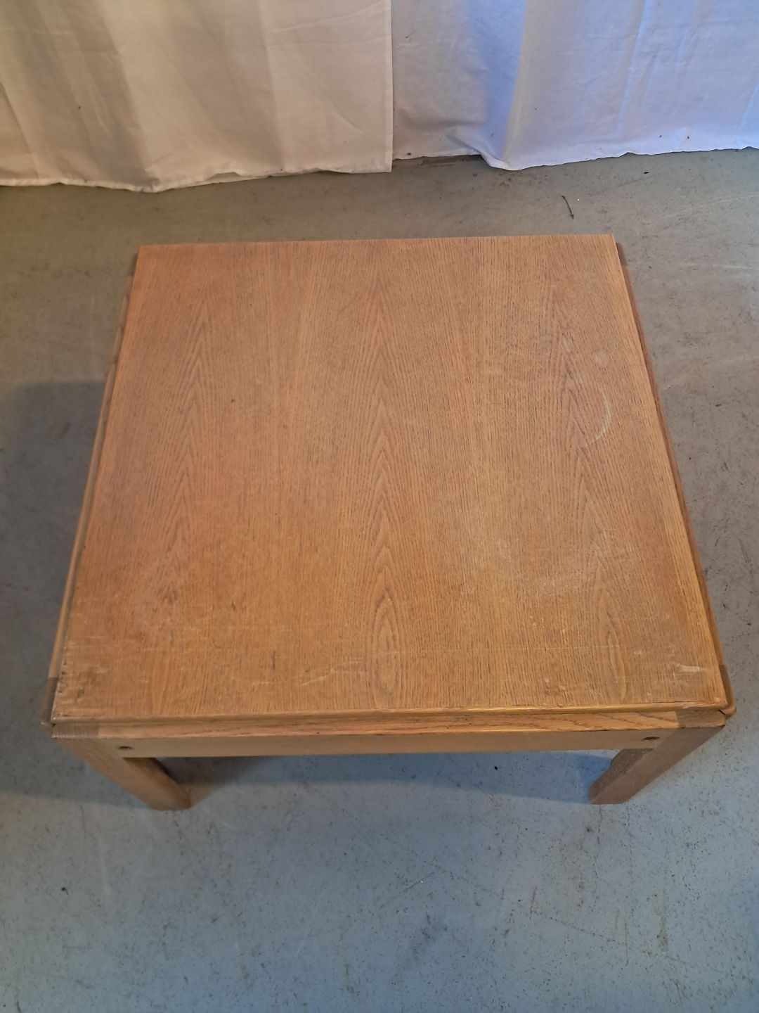 Lampebord i fineret egetræ, fra 1970erne.Det har brugsspor.