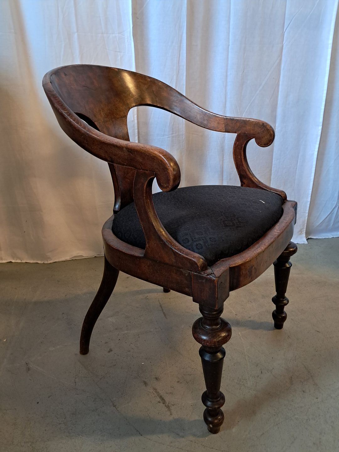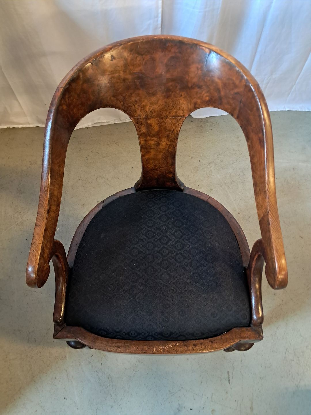 Armstol i massivt bøgetræ med fineret rodtræ, fra 1910erne.Den har brugsspor.