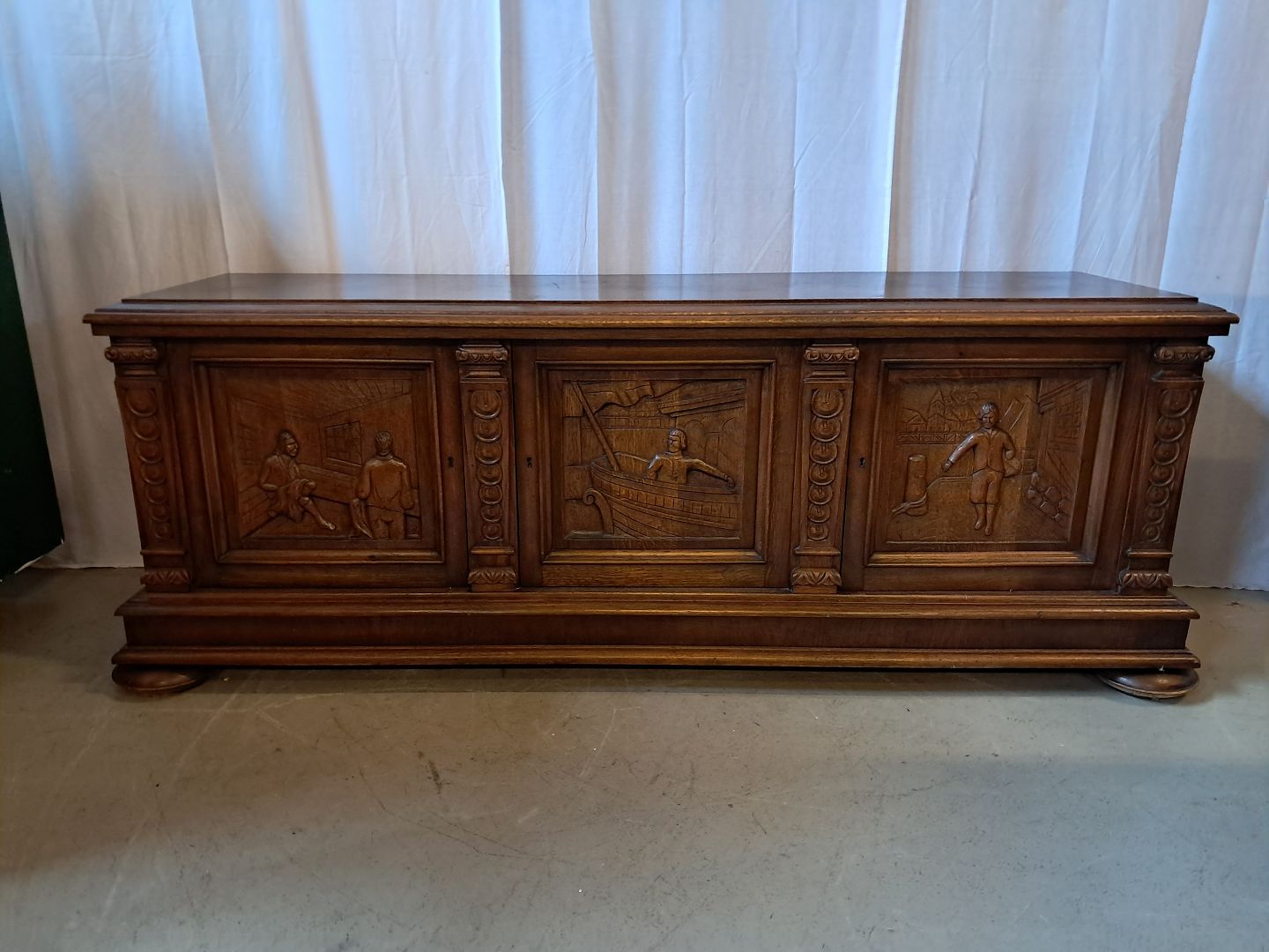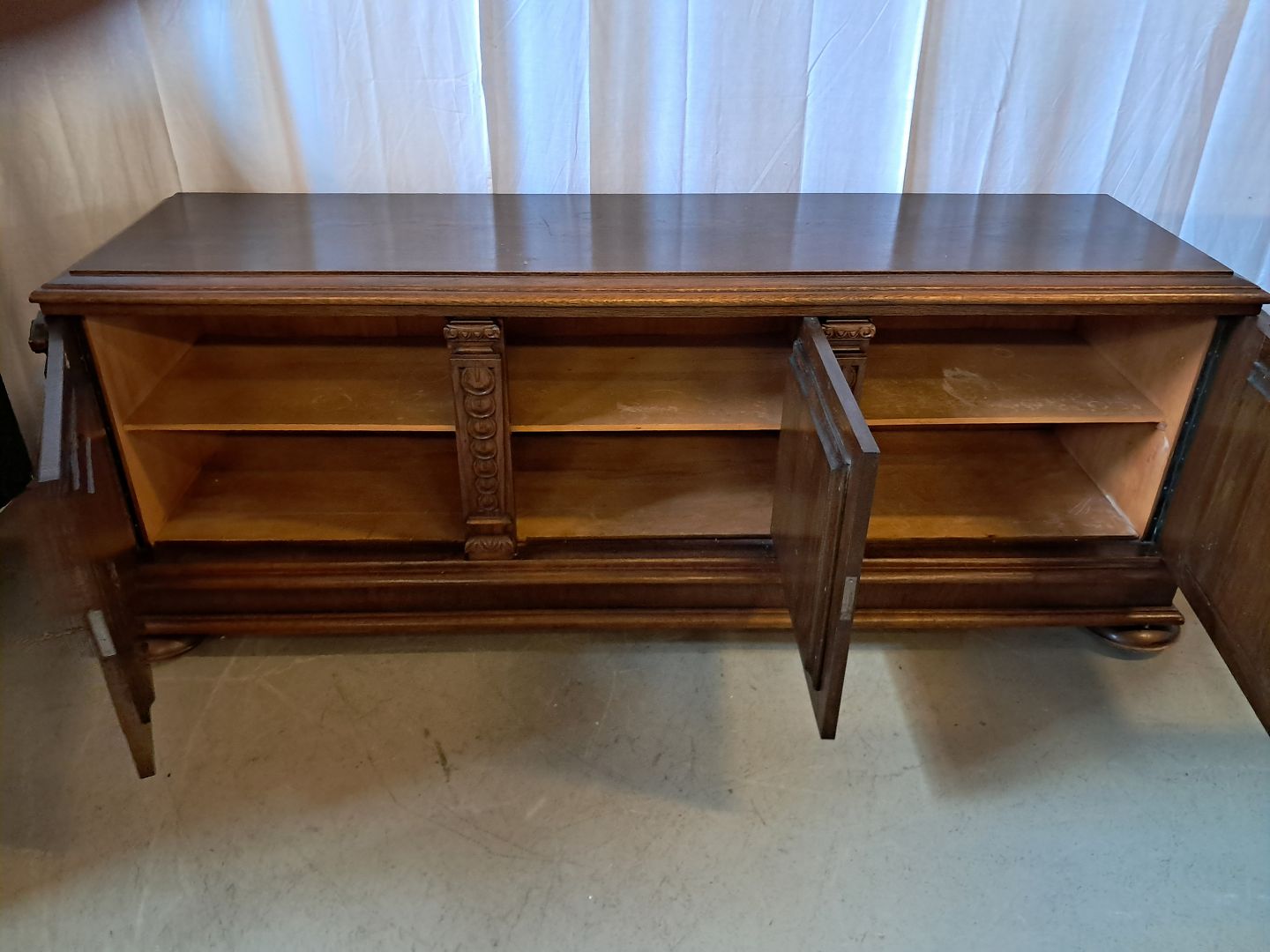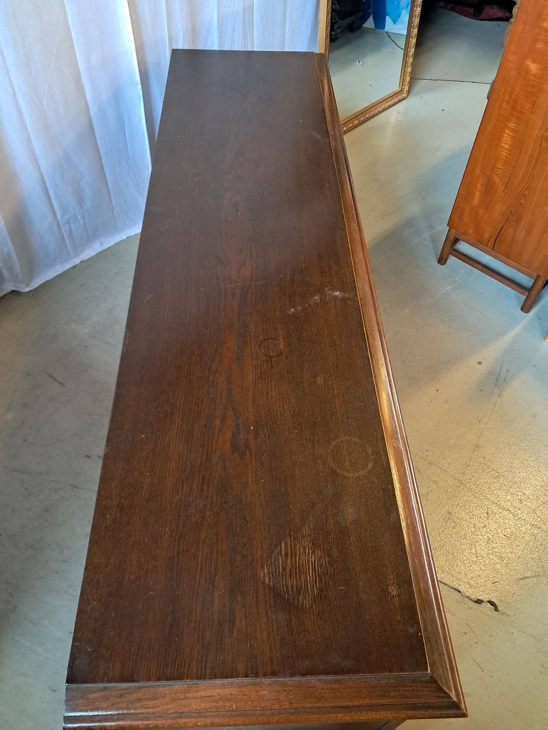 Skænk i fineret egetræ, fra 1930erne.Den har brugsspor.