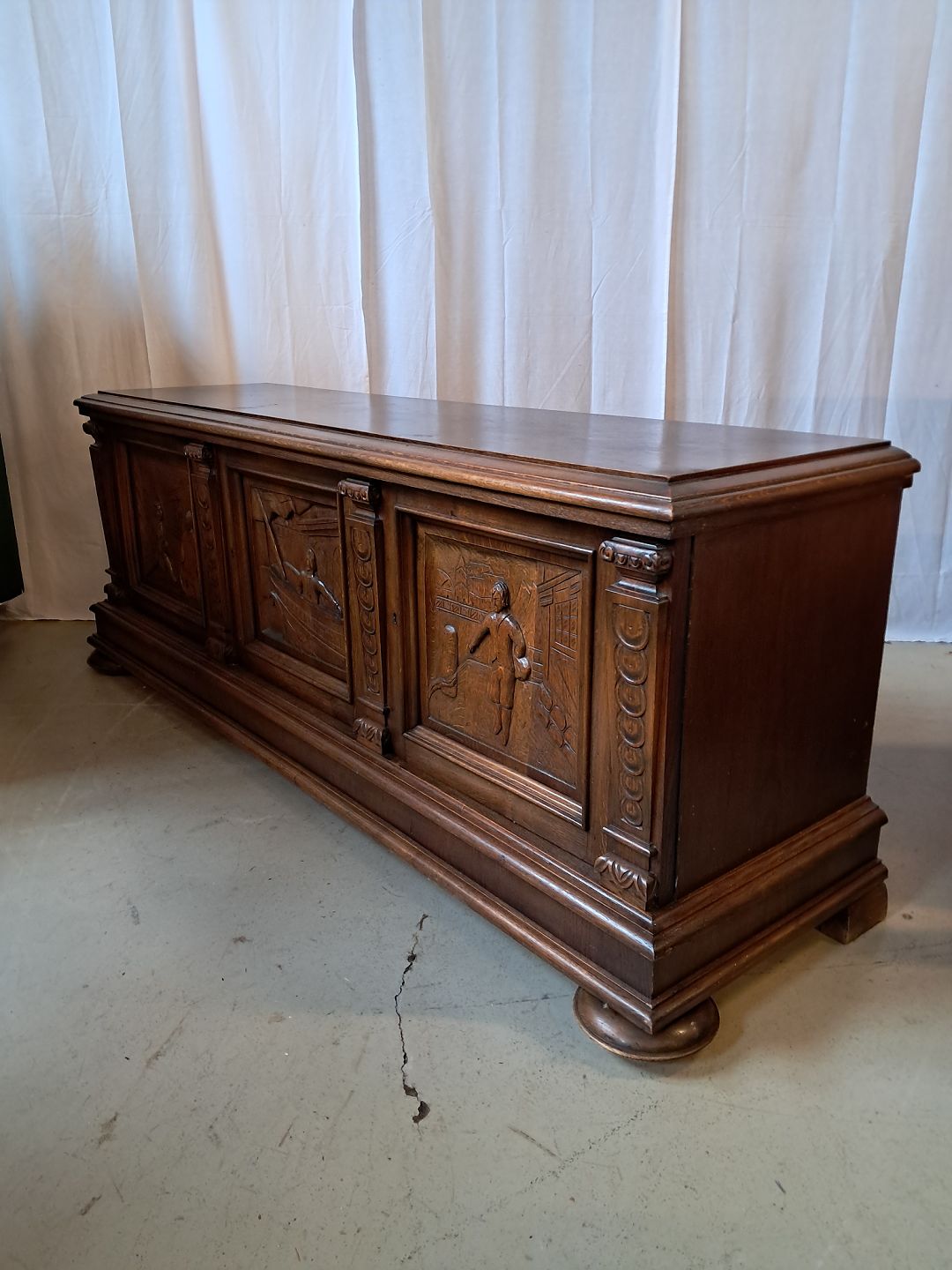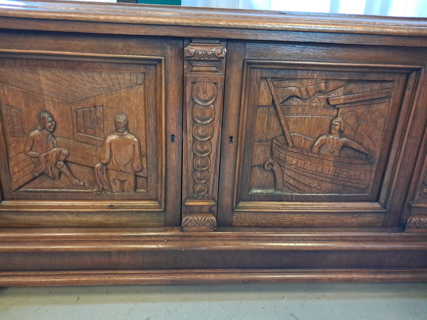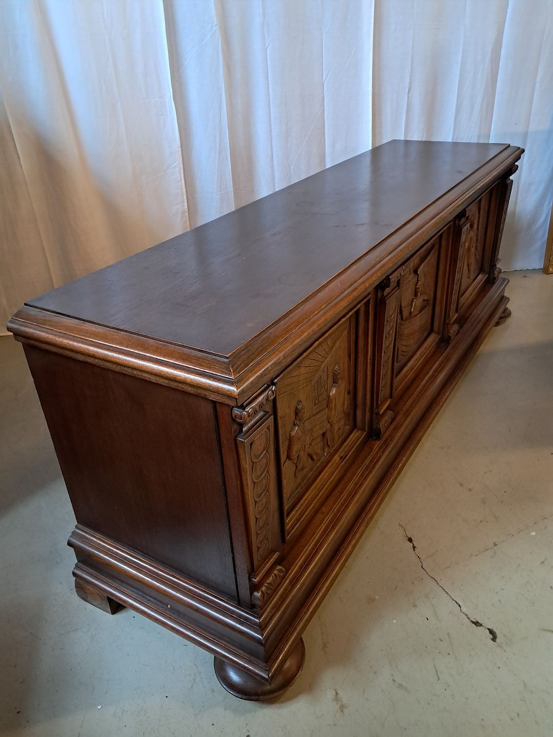 Skænk i fineret egetræ, fra 1930erne.Den har brugsspor.