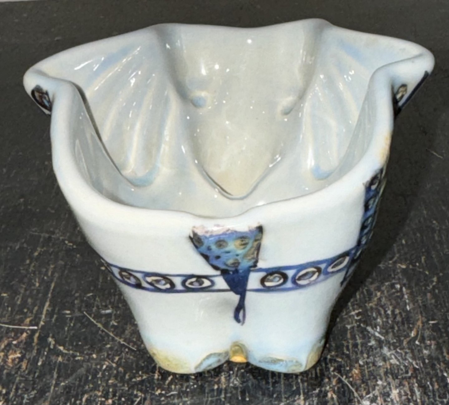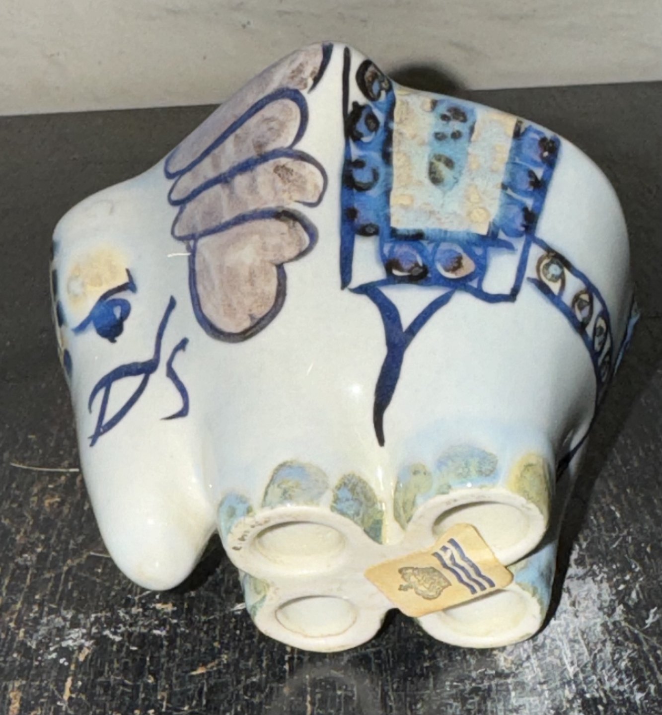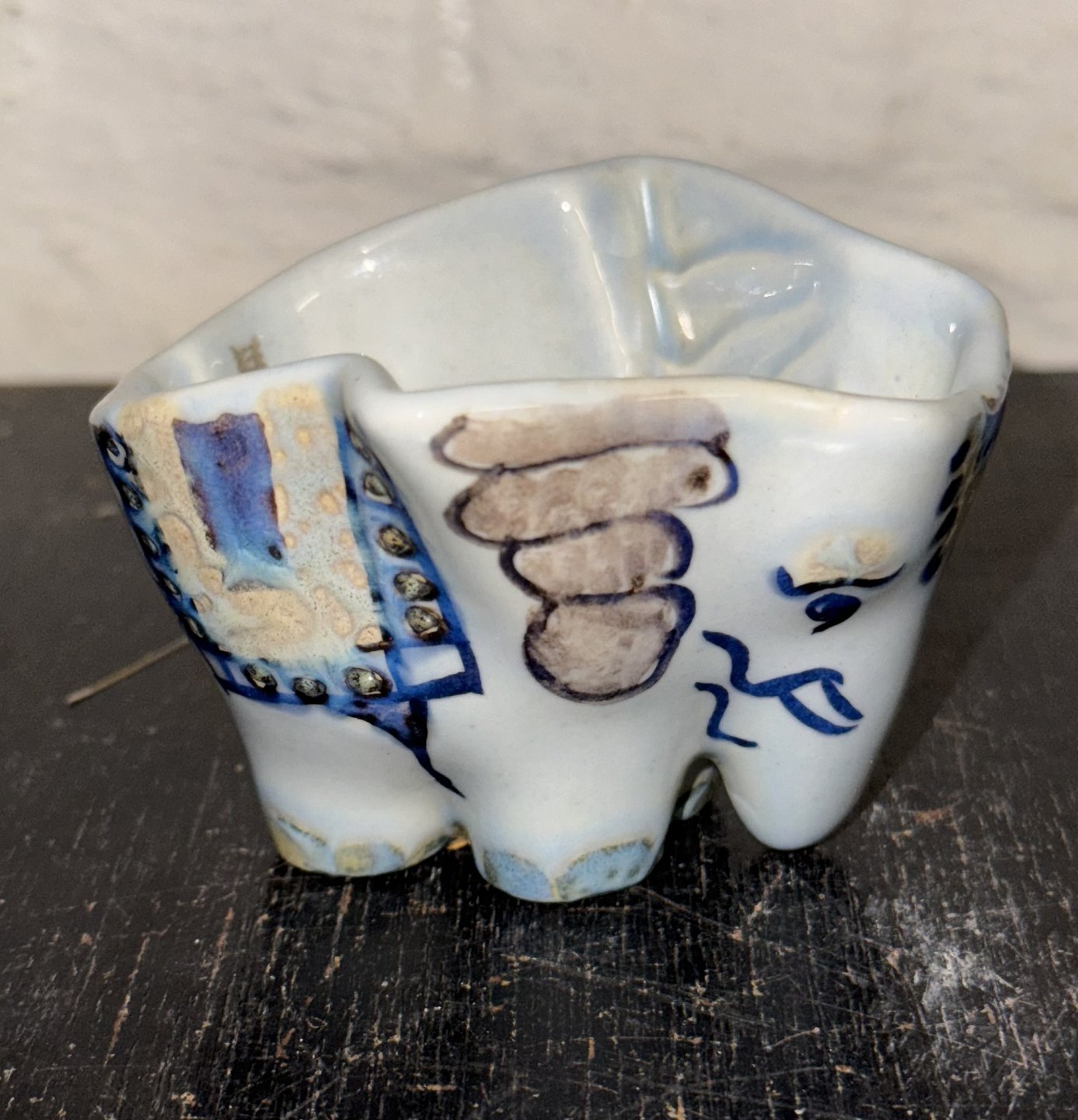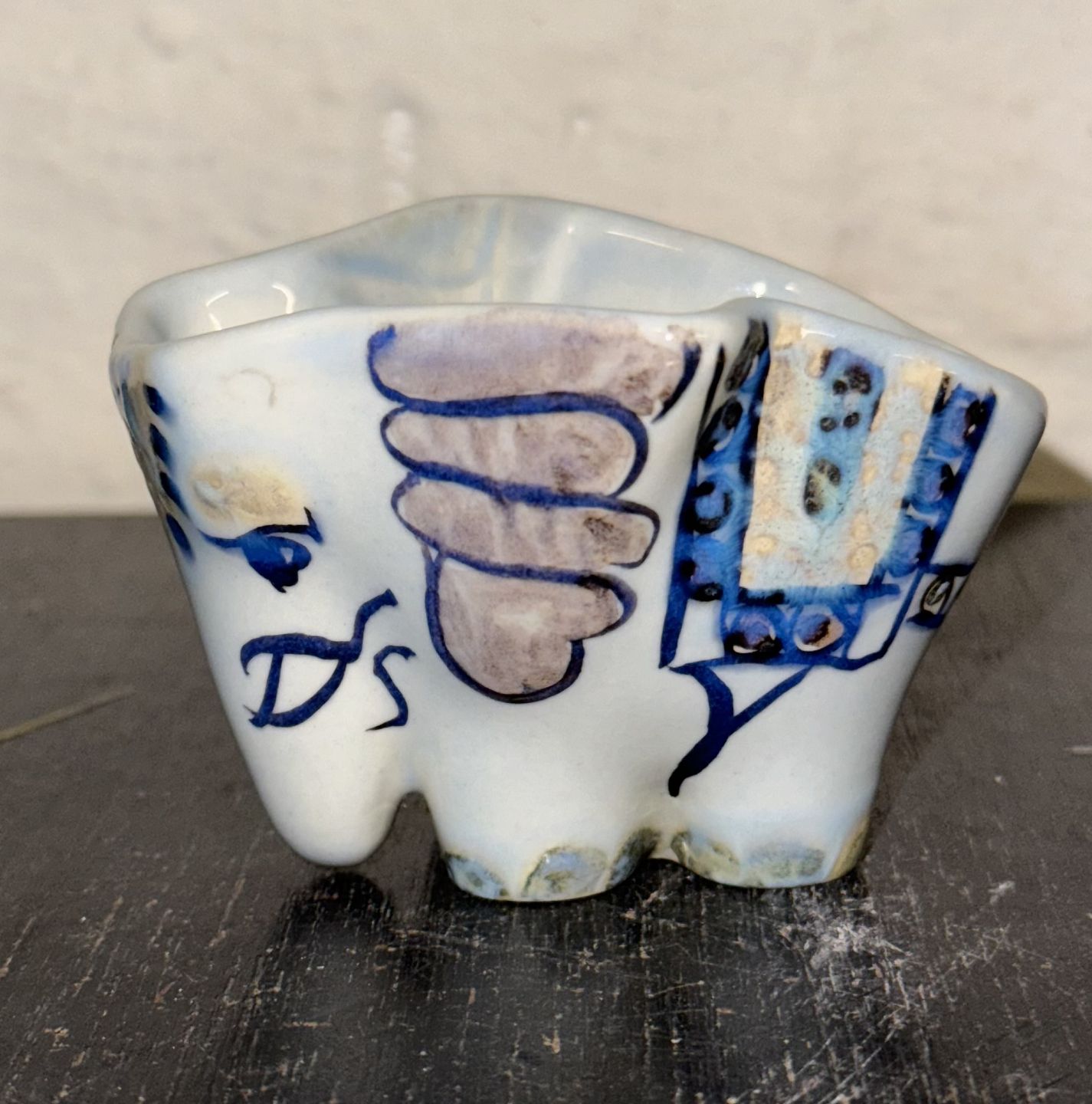 Lille figur i fajance af elefant. Designet af Jean Grut for Aluminia (Royal Copenhagen). Fremstår i god stand. 1. sortering. Fabriksmærket på indersiden. Mål: H. 5,3 cm