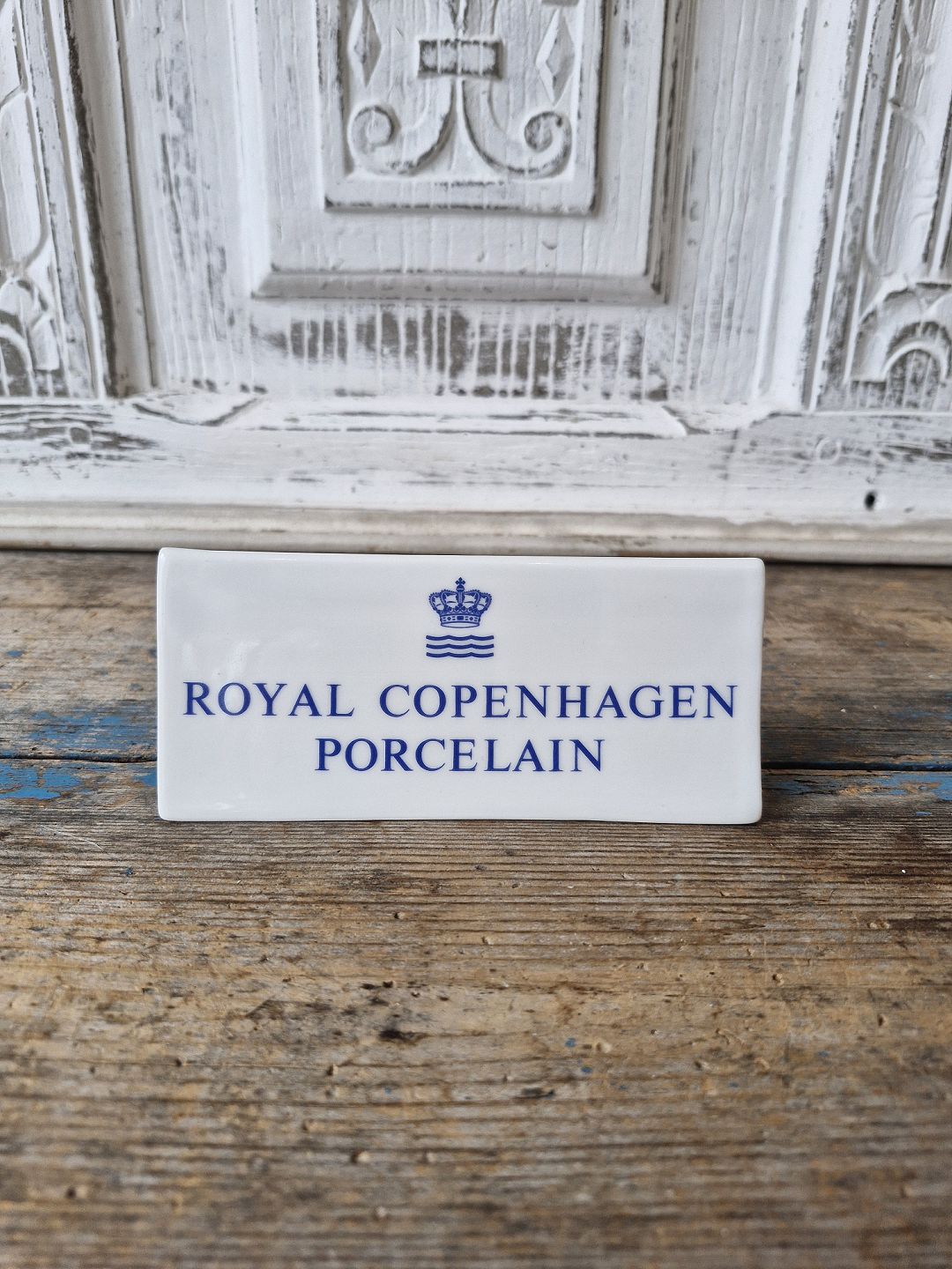 Royal Copenhagen ForhandlerskiltHøjde 6 cm. Længde 14 cm.