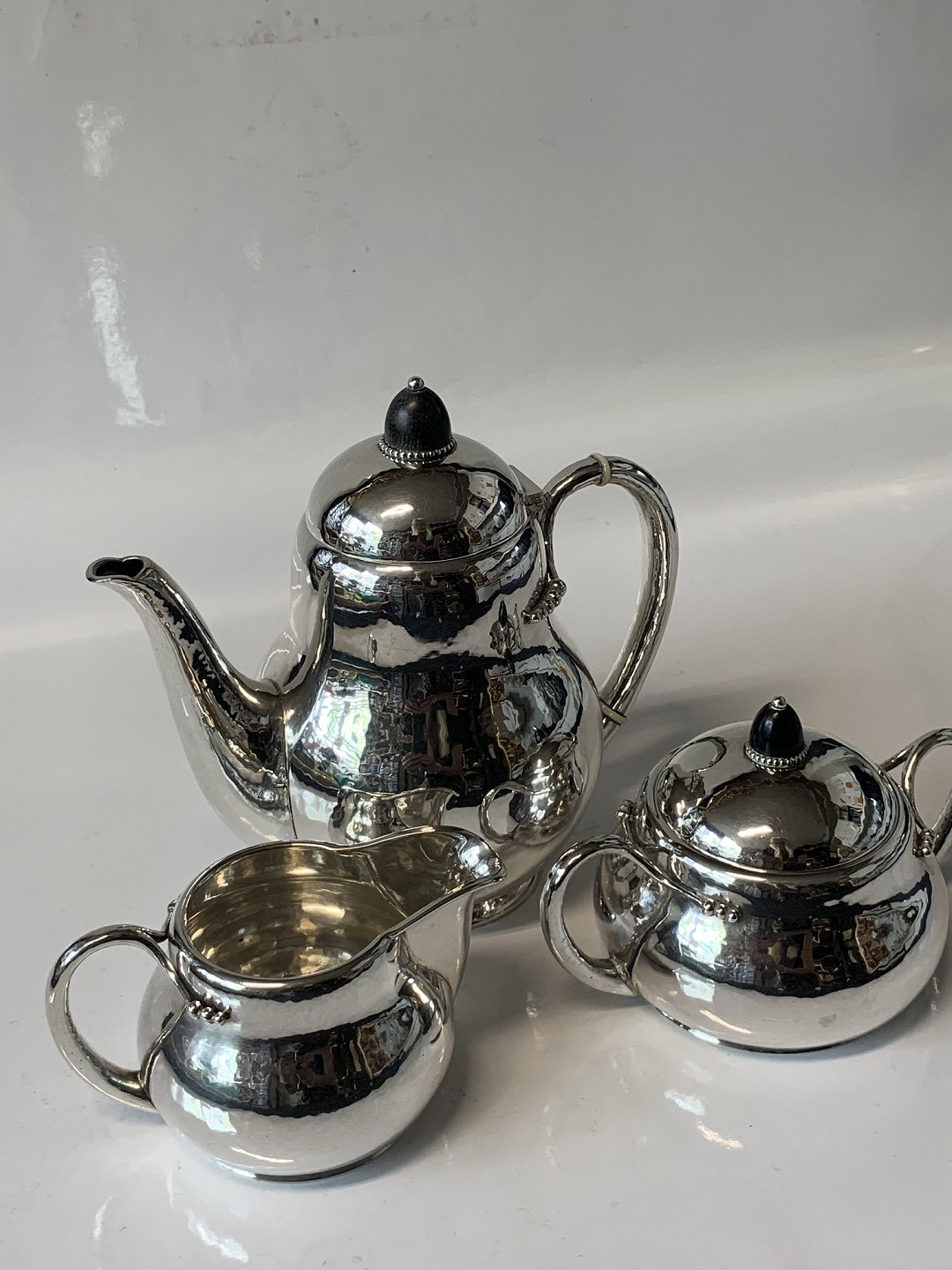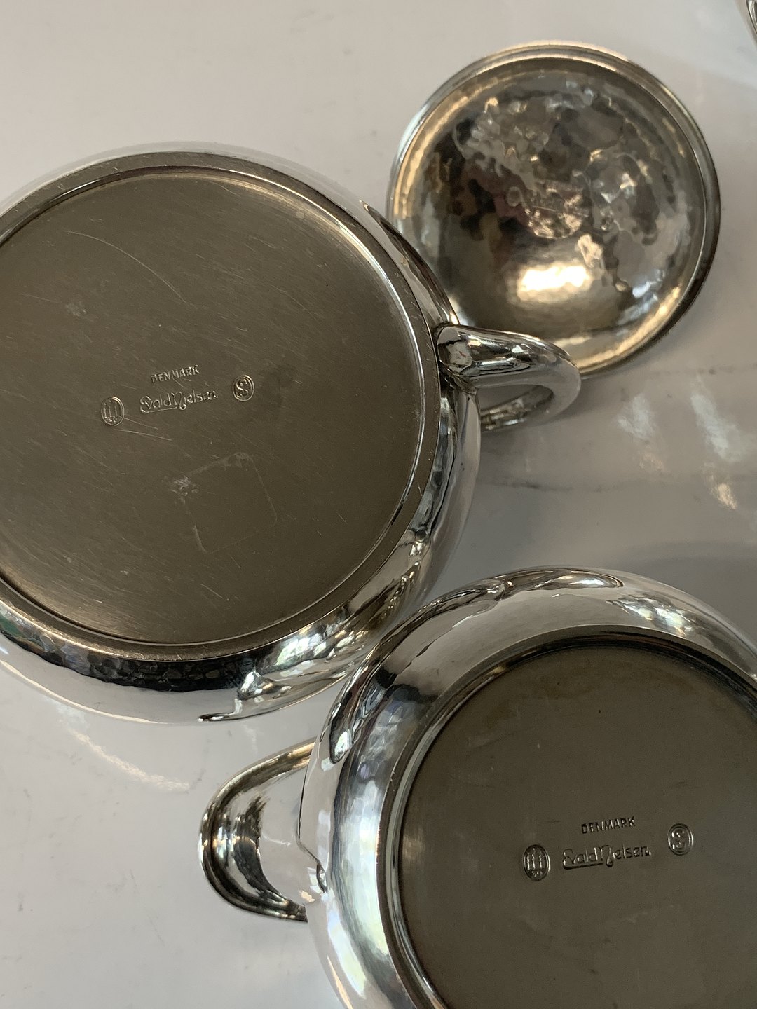 Mokkasæt i sølv 3 dele.Designed by: Evald Nielsen