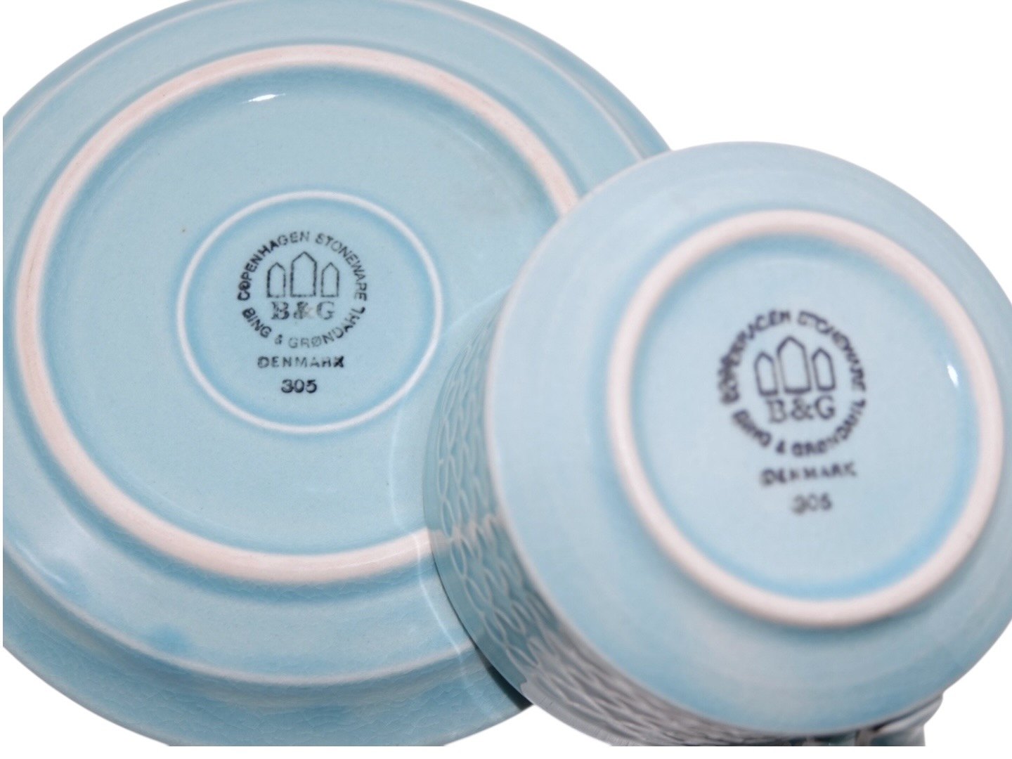 Bing & Grøndahl Turkis Cordial (også kaldet Palet) stentøj, tekop med underkop.Designet af Jens Harald Quistgaard.