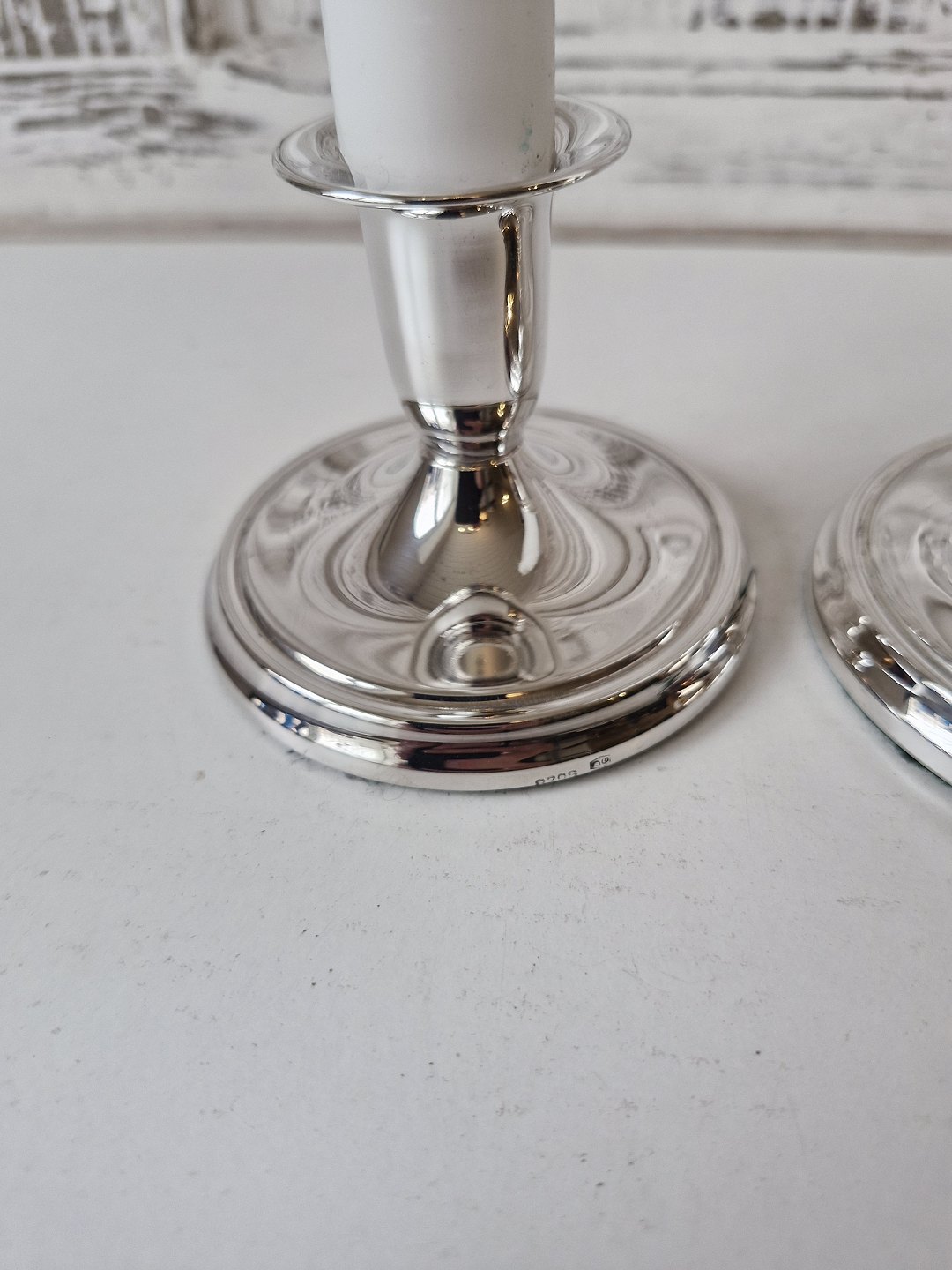 Par lave lysestager i sølvStemplet 830s