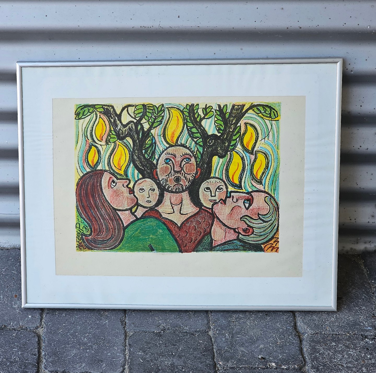 Indrammet litografi med motiv af folk under et træKunstner Henry Heerup, 1907-1993