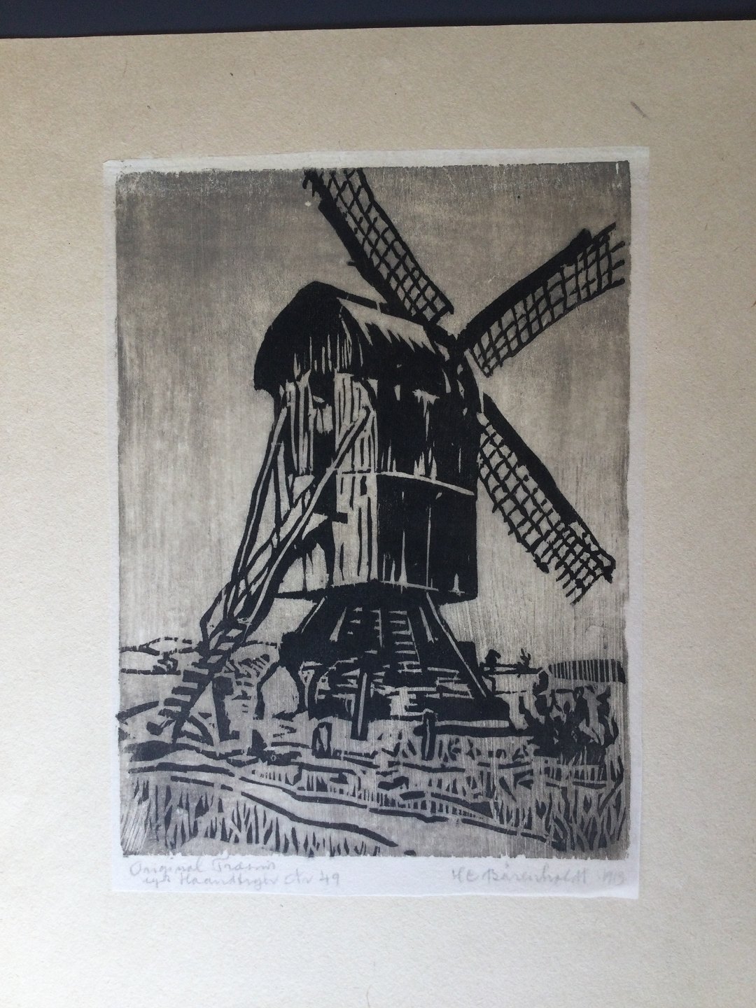 Træsnit af H.C. Bärenholdt - Stubmølle 1913.