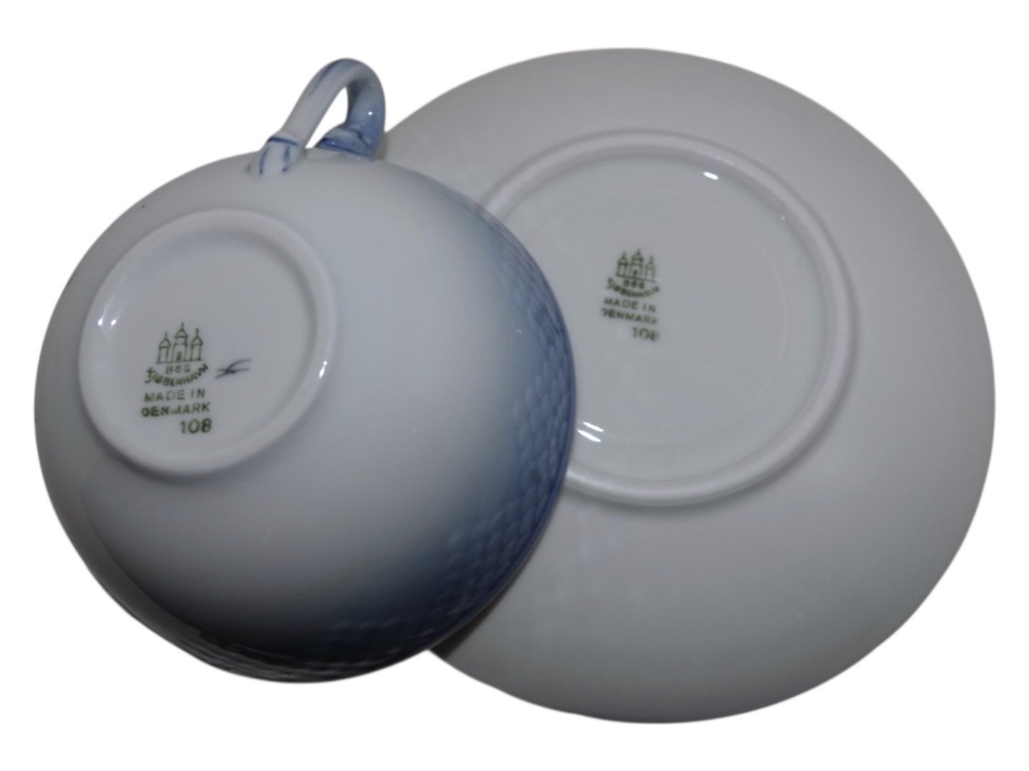 Bing & Grøndahl Måge uden guldkant, tekop med tilhørende underkop.Dekorationsnummer 108 eller nyt nummer 473.