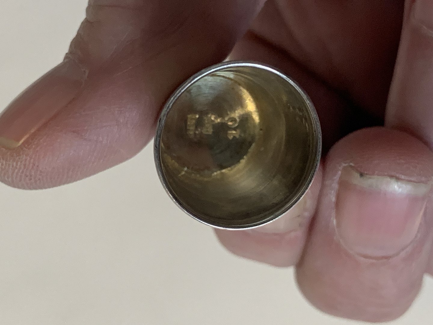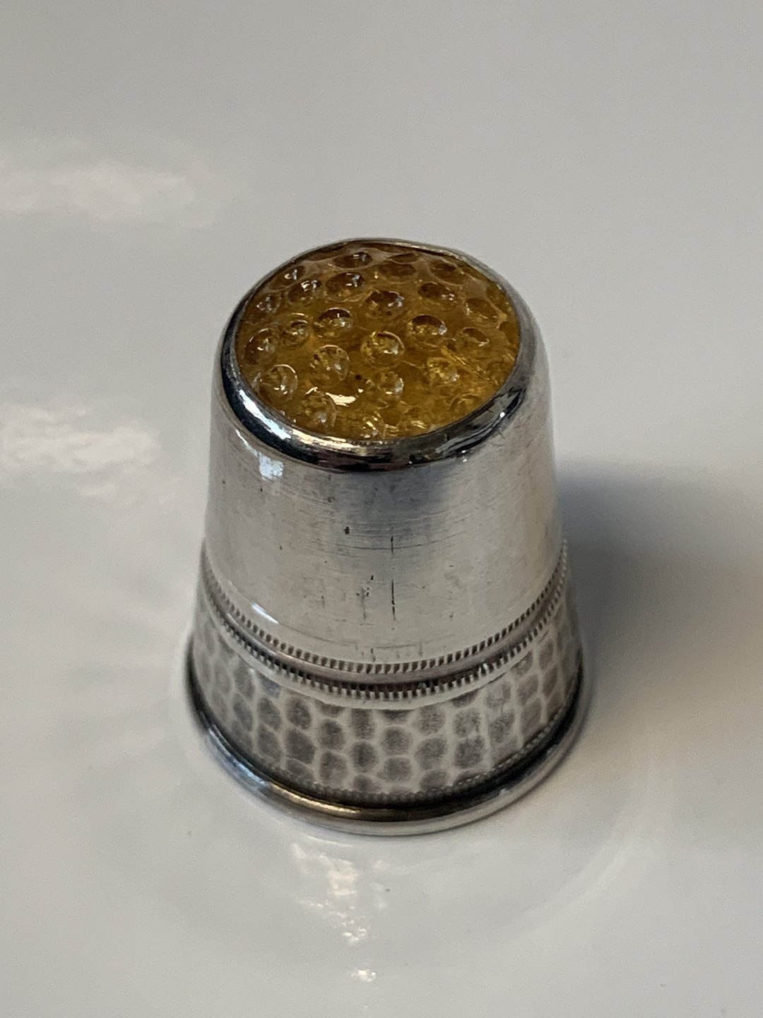 Fingerbøl sølv med gul flus. Stemplet H.Gr. 835s.10.