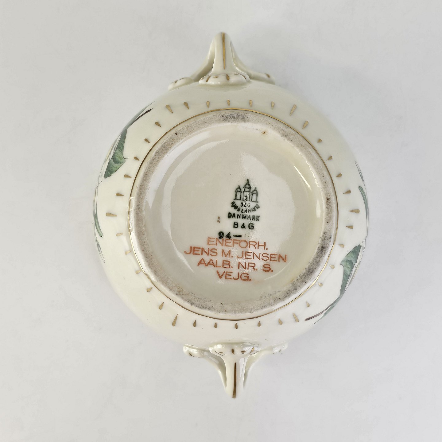 Stemplet under bunden med B&G stempel og Eneforh. Jens M. Jensen Aalb. Nr. S. Vejg.
