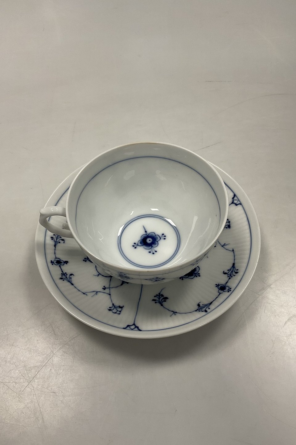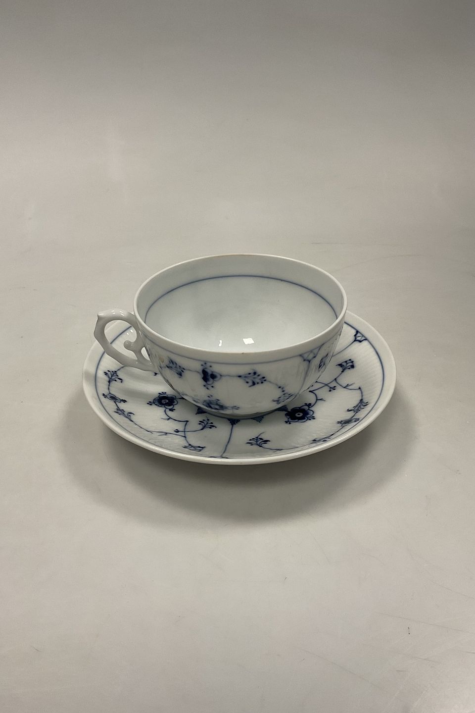 Bing og Grøndahl Blå Malet Riflet Stor Morgen Kop og underkop