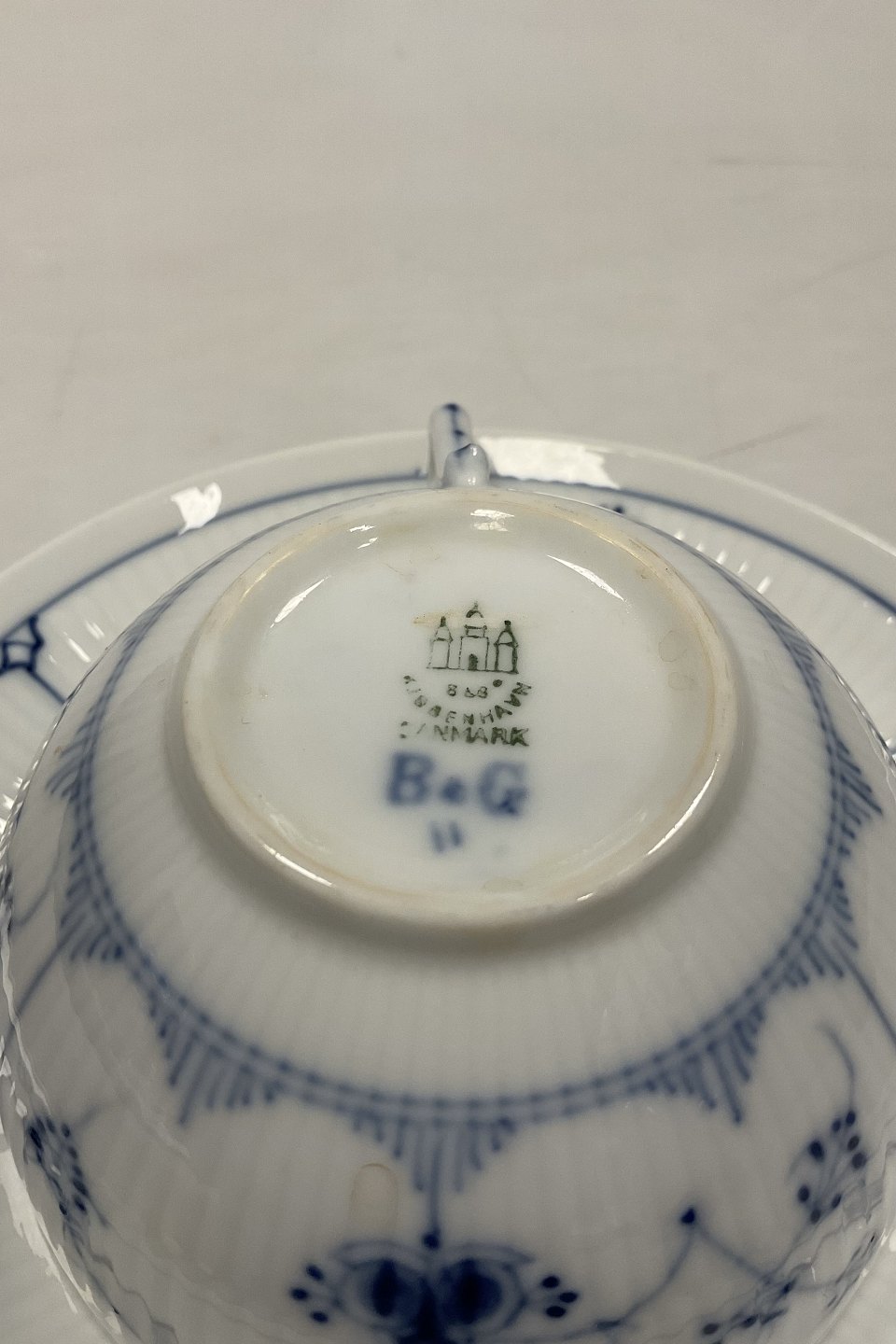 Bing og Grøndahl Blå Malet Riflet Stor Morgen Kop og underkopMåler 11cm dia og 17,4cm med underkop / 4.33 inch and 6.85 inch