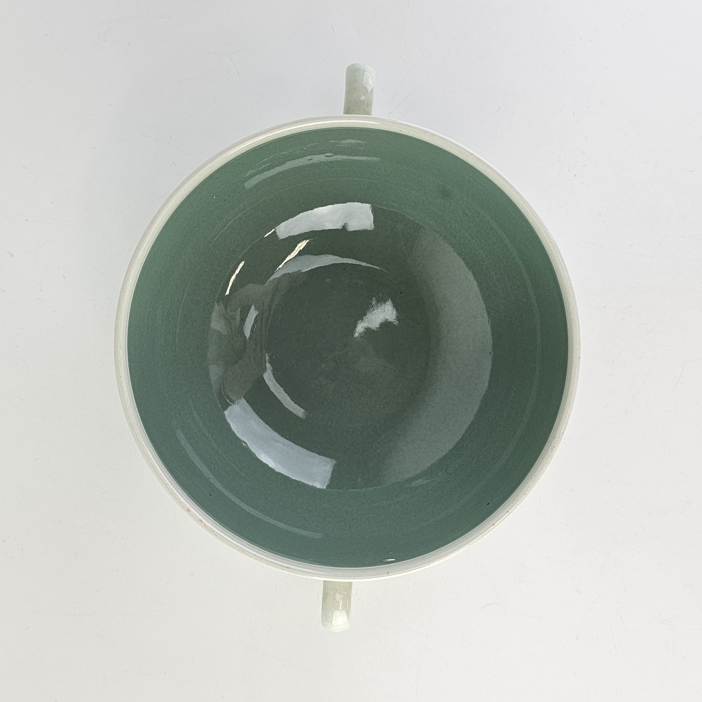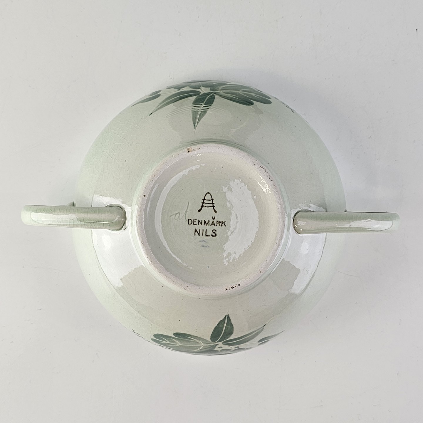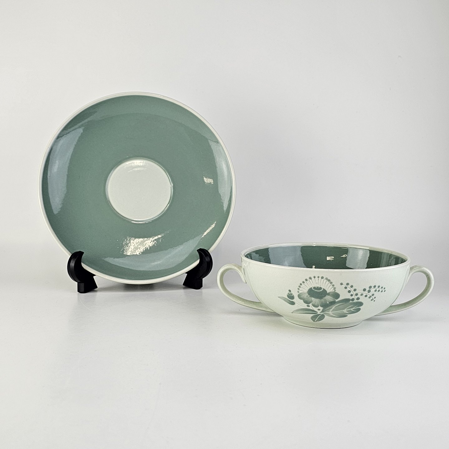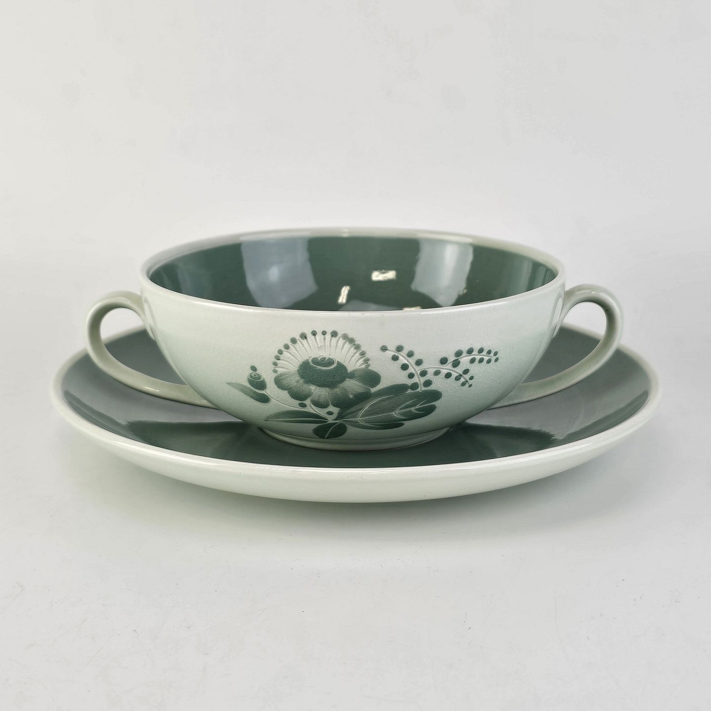 Bouillonkop med underkop i fajance fra stellet NilsFormgiver Nils Thorsson