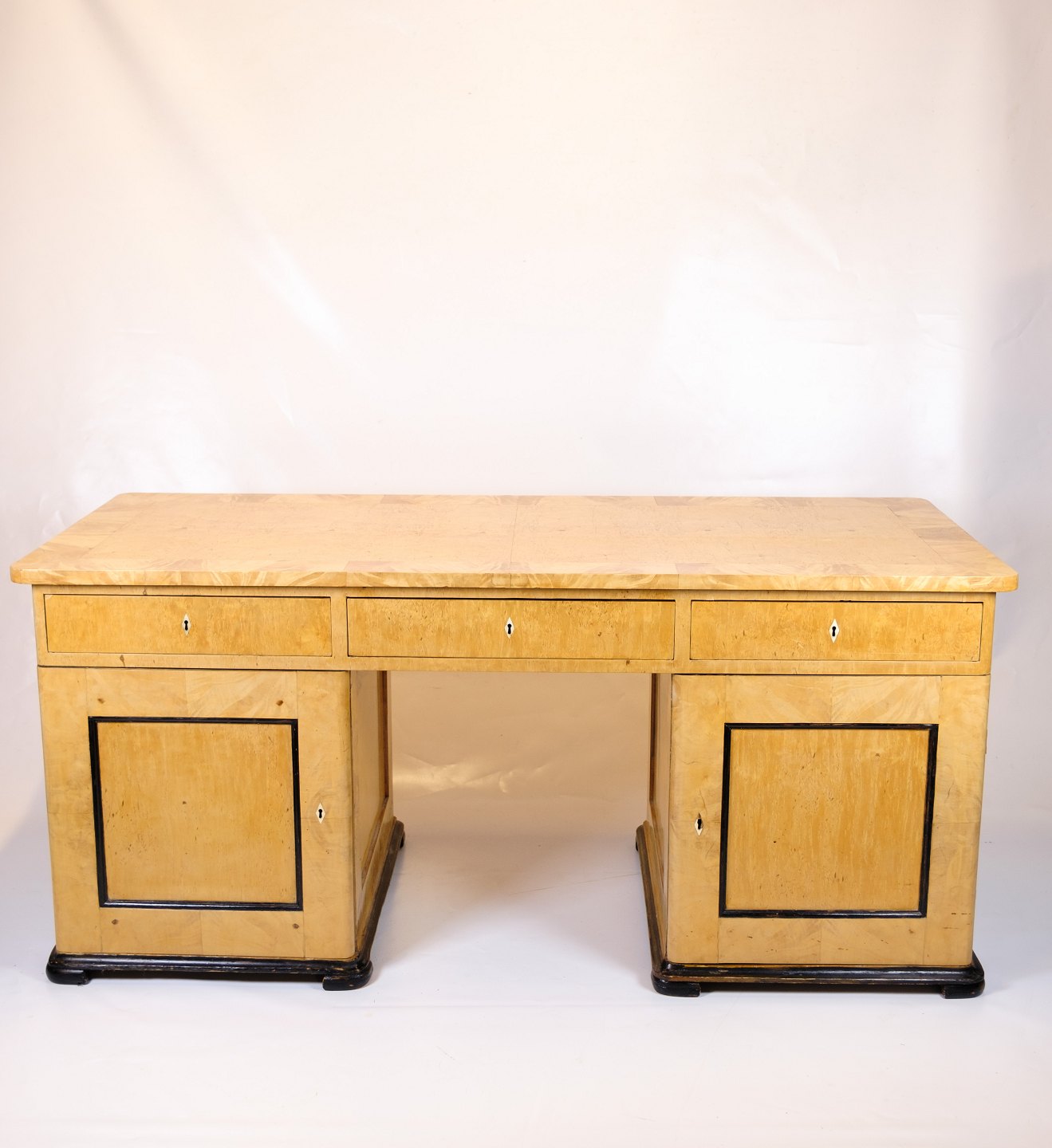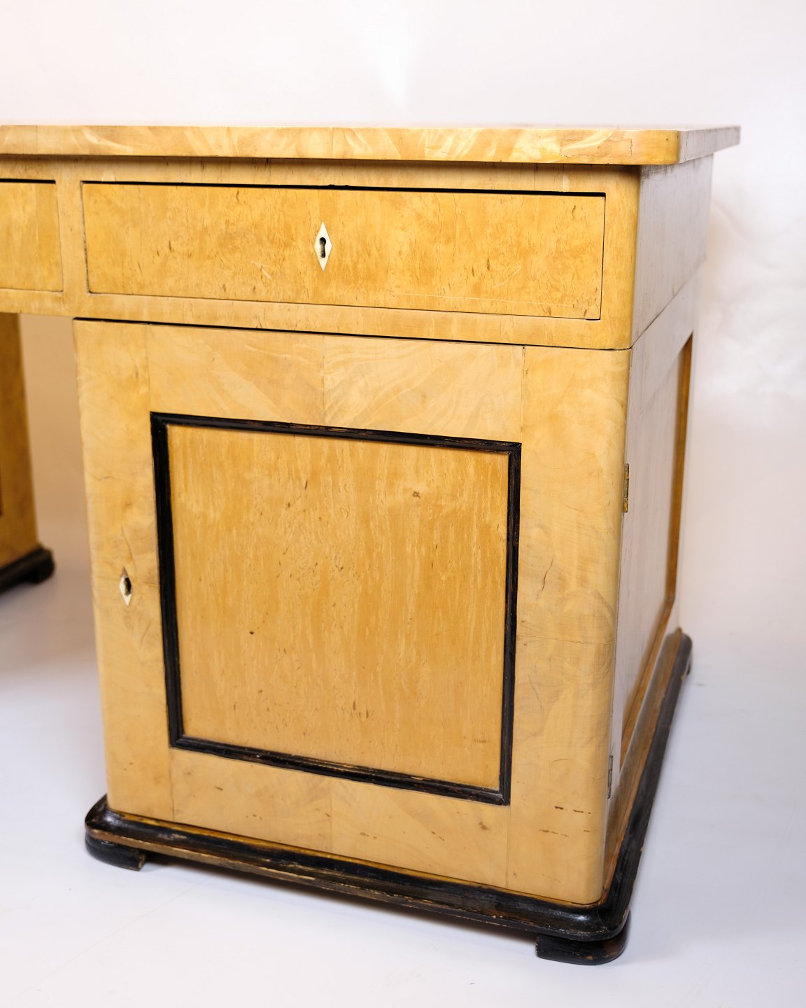 Antiker Schreibtisch aus den 1840er Jahren. Aus Birke mit Intarsien gefertigt. Elegantes antikes Möbel mit klassischem Erscheinungsbild.Zeitraum: 1840er Jahre
