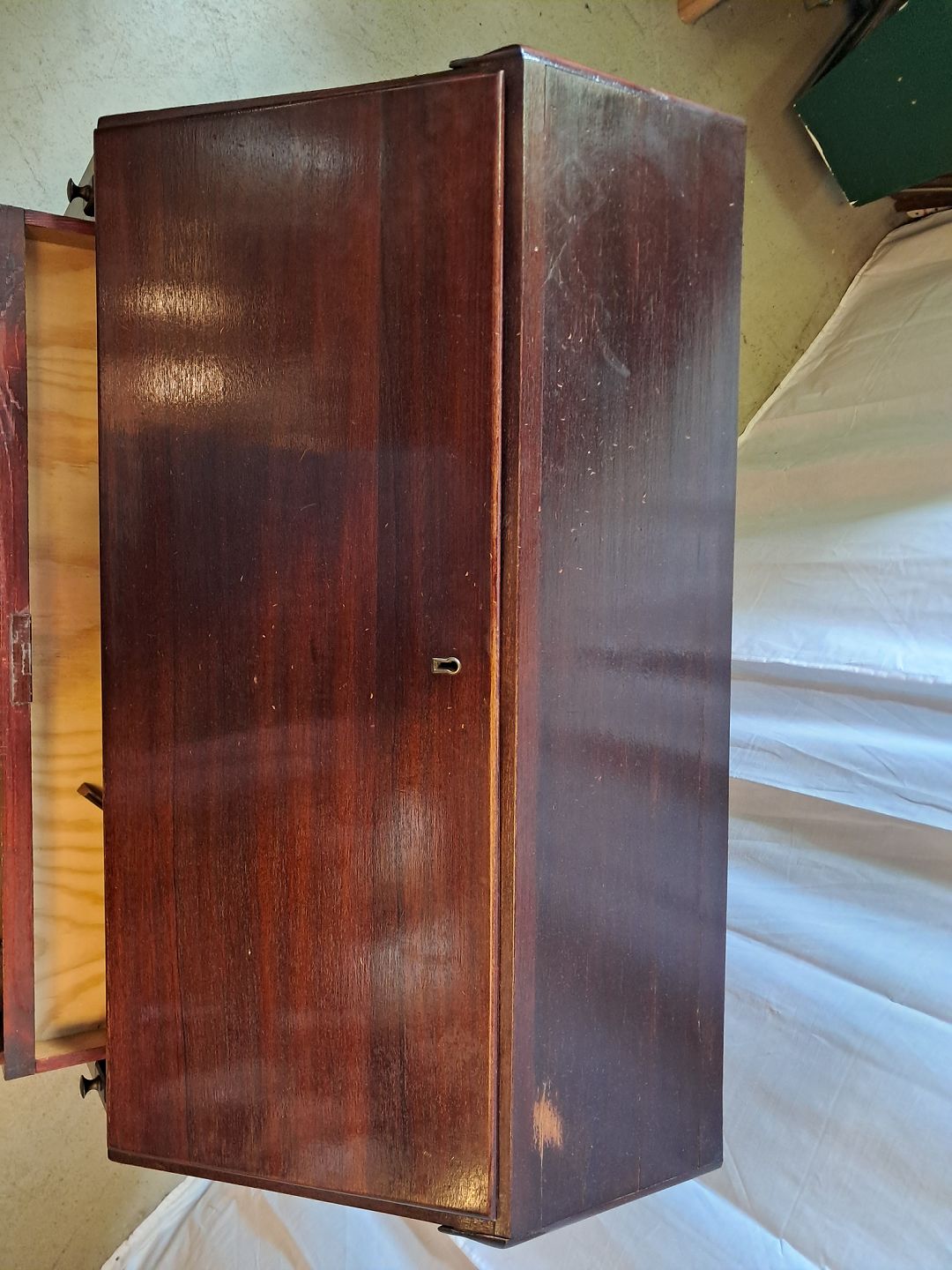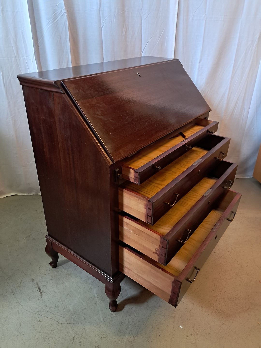 Chatol i fineret mahogni, fra 1930erne.Det har brugsspor og et par løse lister.