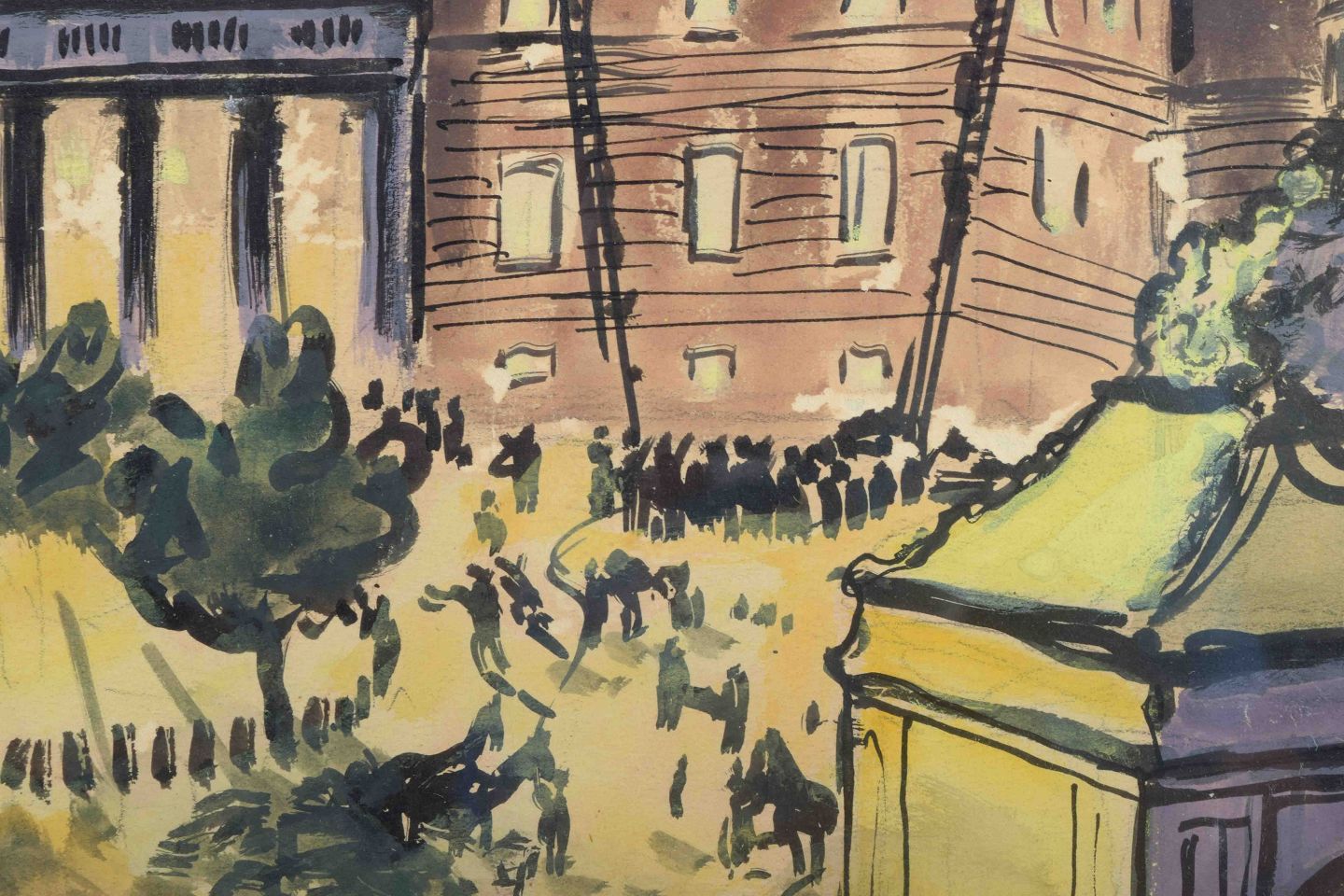 Anton Hansen (1891–1960) was a Danish painter, illustrator, and satirist. He is best known for his political cartoons and illustrations but also produced paintings and watercolors with historical and socially engaged subjects. His works are characterized by sharp lines and a vivid ability to capture dramatic moments of his time.