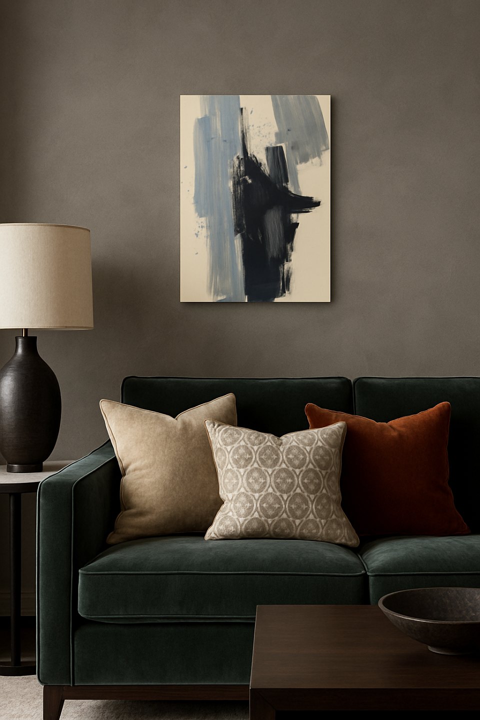 Et stemningsfuldt værk af Bengt Orup, hvor hans sans for komposition og abstraktion kommer til udtryk gennem lette penselstrøg og en raffineret farveholdning.