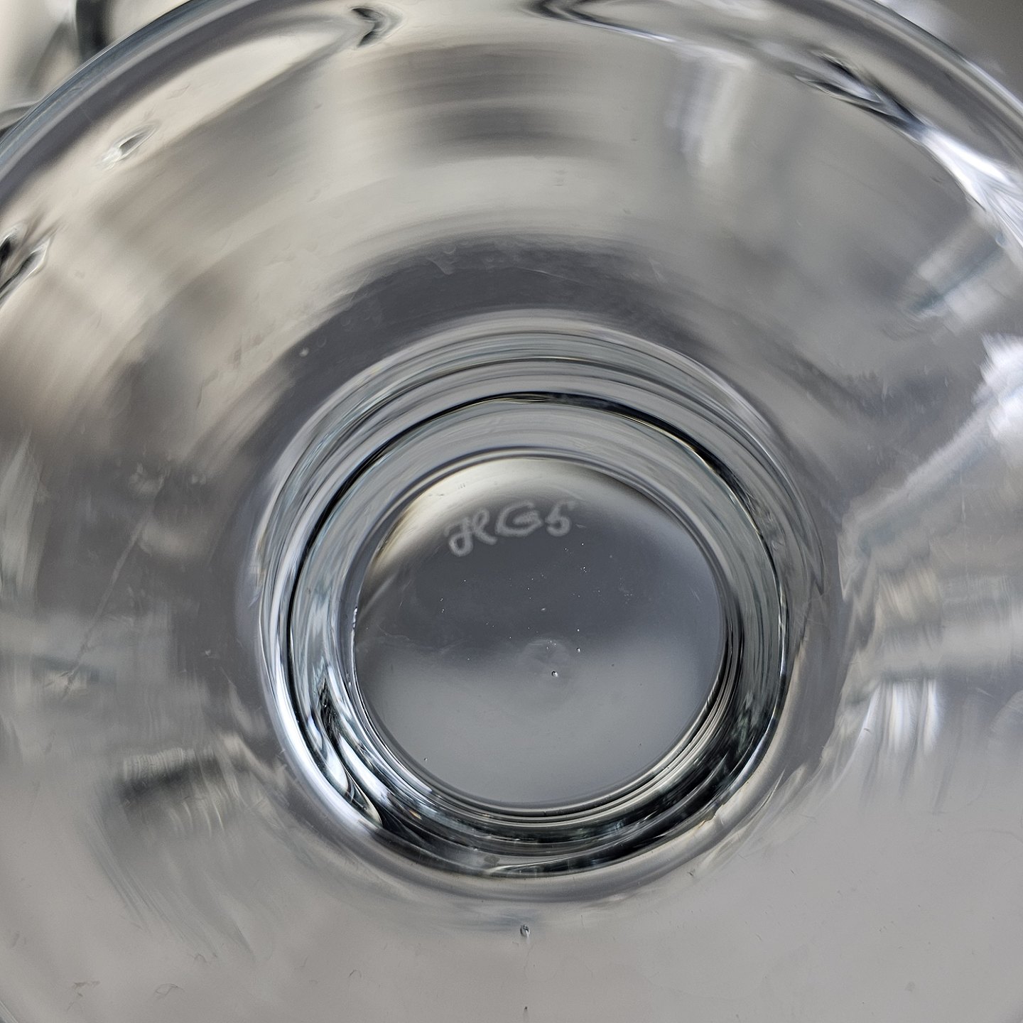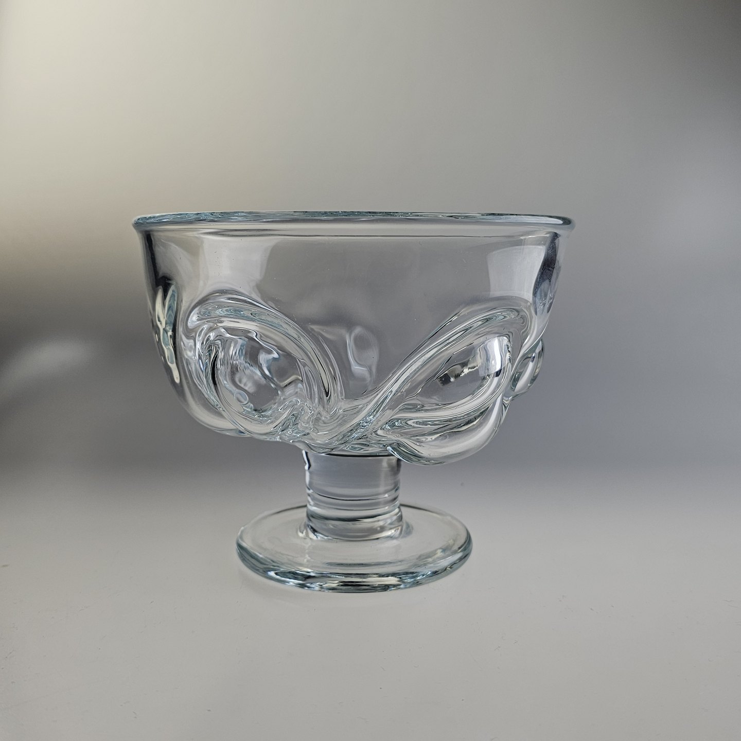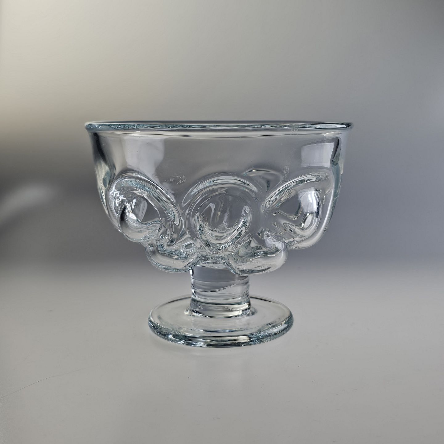 Glas skål på fod fra stellet Banquet, produceret i anledning af Holmegaard's 150 års jubilæumFormgiver Per Lütken, Kylle Svanlund, Sidse Werner og Michael Bang