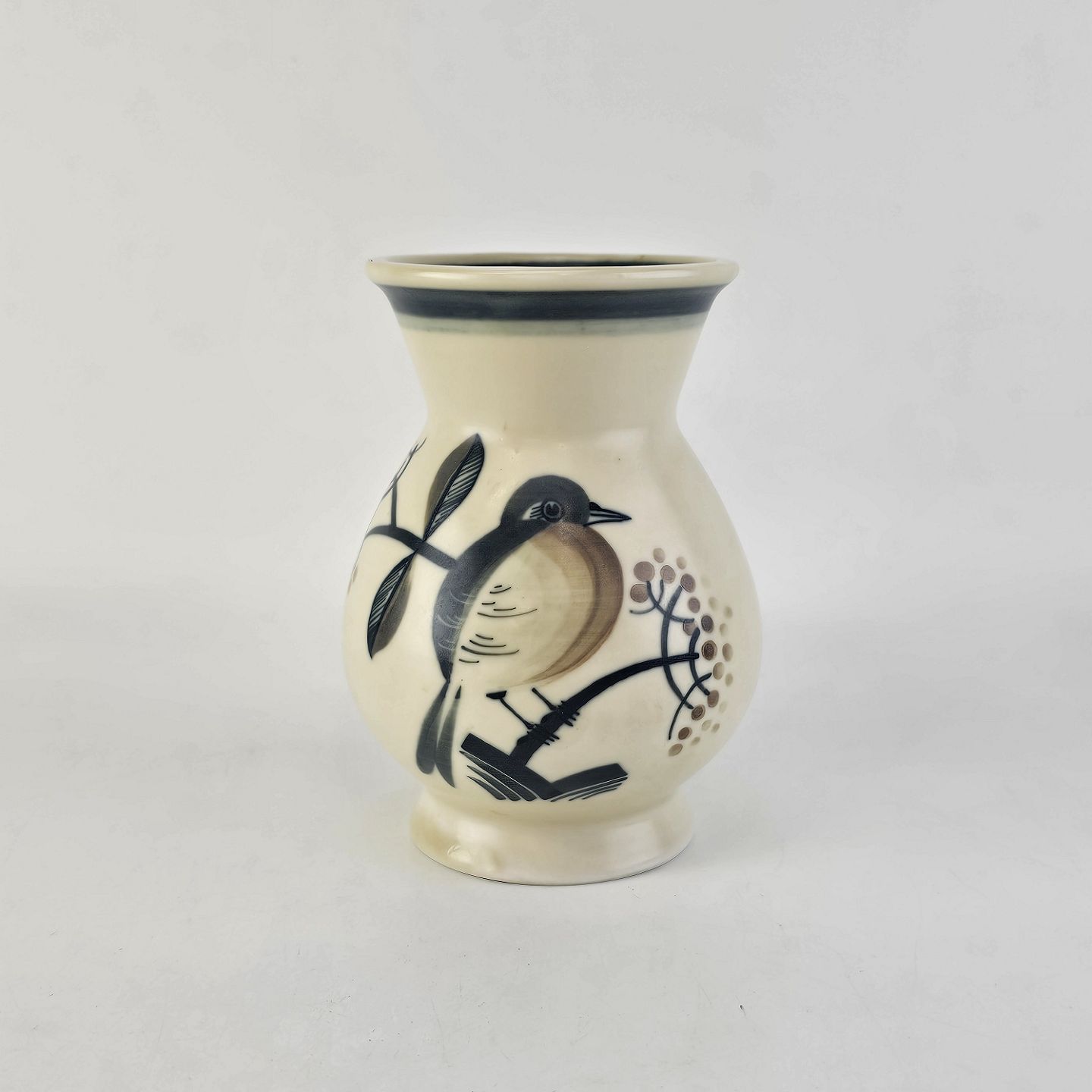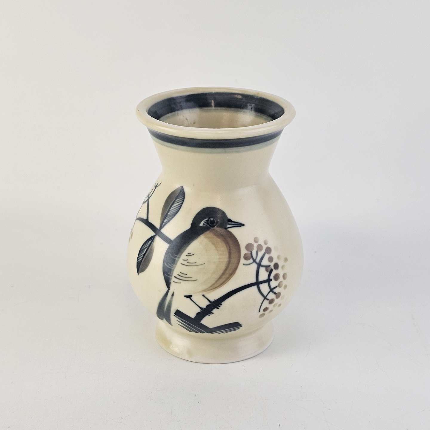 Vase i fajance med motiv af en fugl på en gren30/1